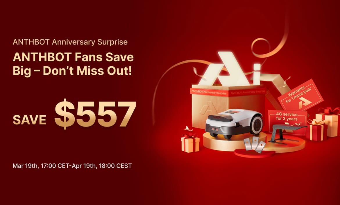 The ANTHBOT combines efficiency, safety and environmental friendliness in one intelligent device. Thanks to its innovative AI technology, it completely takes over lawn care for homeowners – for more free time and a well-tended lawn at all times. The ANTHBOT is the perfect choice for anyone looking for intelligent garden care. And thanks to the ANTHBOT anniversary surprise, you can also save a lot of money on the promising robotic lawnmower.