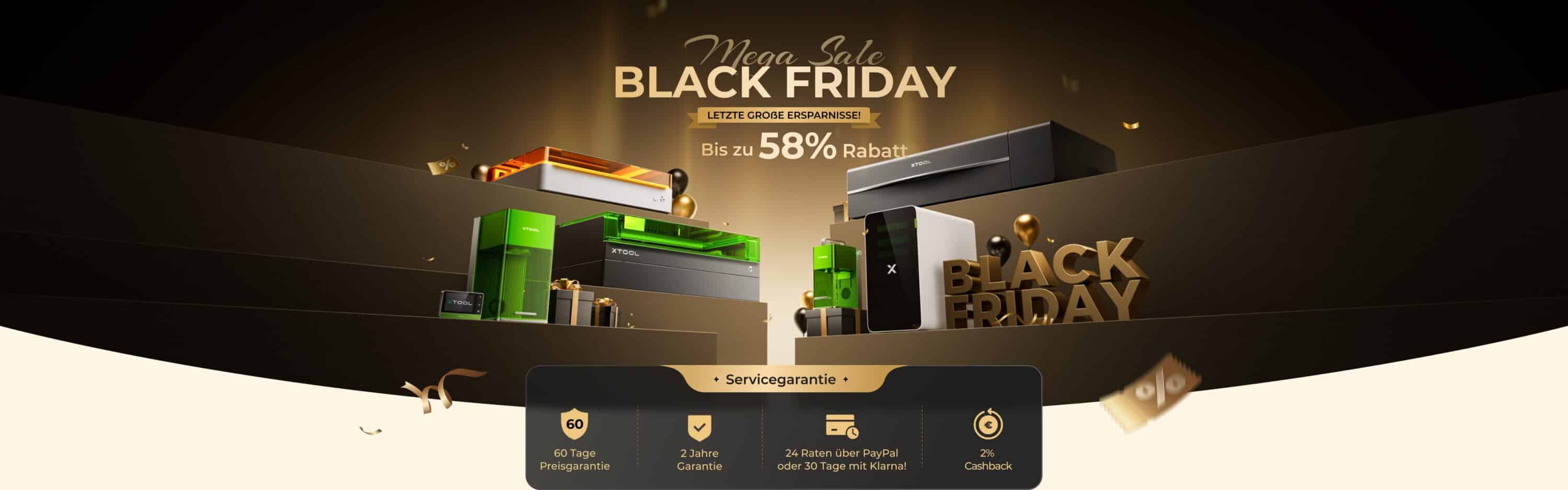 It’s Black Friday again and bargain hunters are jumping for joy. And quite rightly so. After all, you can save big again this year. xTool, the expert for state-of-the-art and user-friendly laser engraving machines, is also taking part. You can save up to 58% on the manufacturer’s machines during the Black Friday Mega Sale until November 29, 2024. Let’s move on to Cyber Monday. Here you can save again between November 30 and December 6, 2024. Here are the highlights for you.