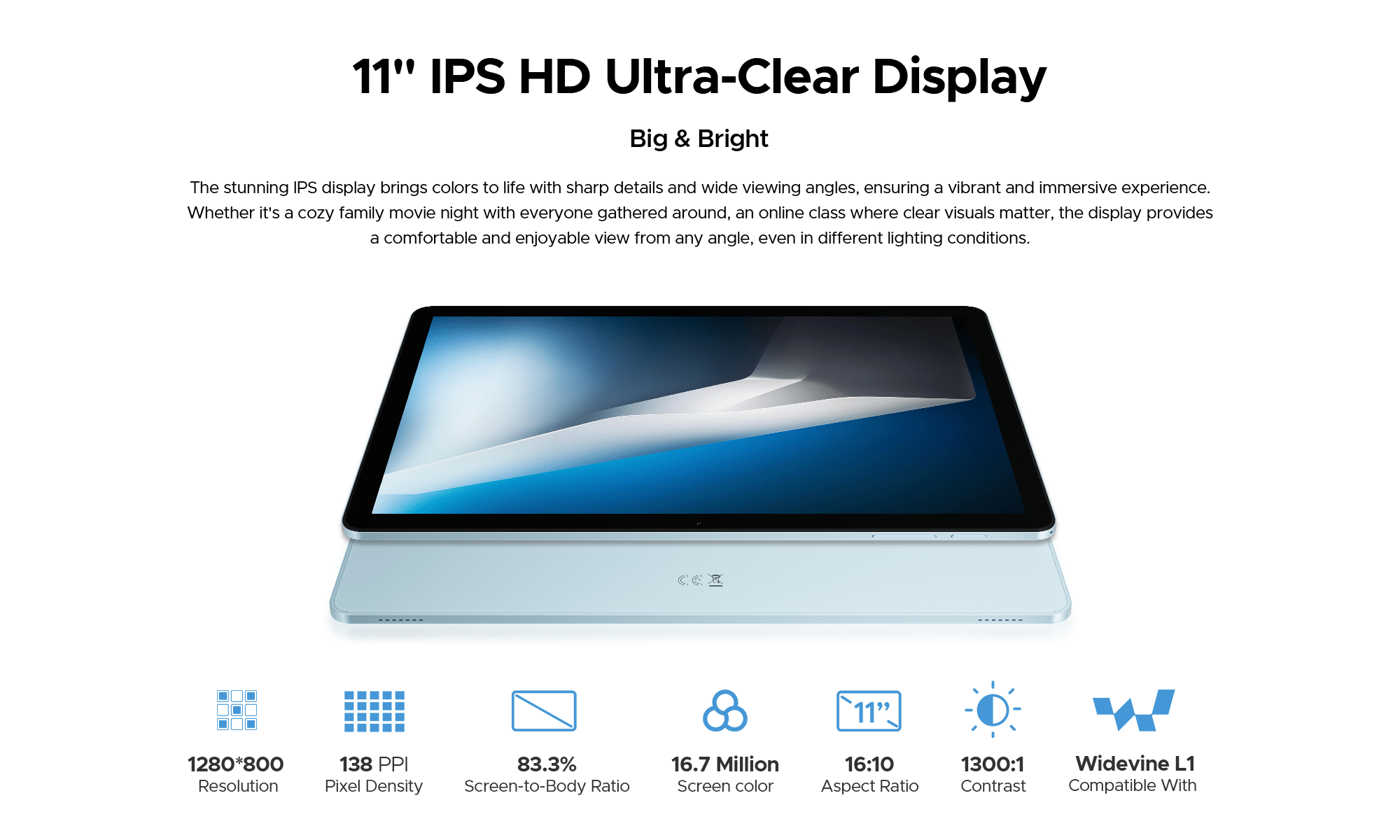 - 11-inch HD display with Eye Care technology for easy on the eyes
