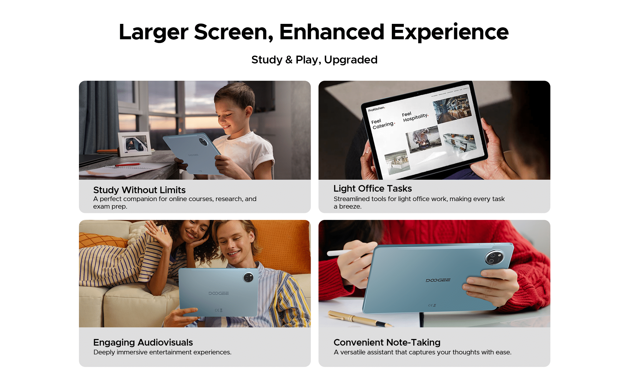 Whether for working, studying or as an entertainment platform – the DOOGEE Tab A9 Pro+ is flexible and functional in every situation. The overall package not only impresses with its performance, but also with its well thought-out price-performance ratio.