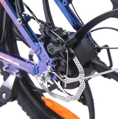 Even in the dark, the motorized bike is always safe to ride thanks to the bright front LED headlight and rear brake light. Comfort is not only provided by a comfortable saddle. The 20×3 inch fat tires from CHAOYANG also ensure a comfortable ride on both asphalt and rough surfaces.