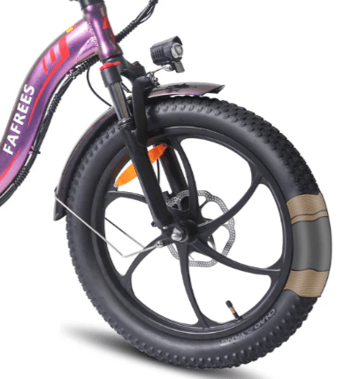 With its 250 W of power and 40 Nm of torque, the brushless motor gives the Fafrees F20 a good boost. In accordance with EU regulations, the e-bike reaches a top speed of 25 km/h. The large 6 V 18 Ah battery should provide a range of up to 90 km. When the battery is empty, it can be easily removed and recharged at a socket in the home.