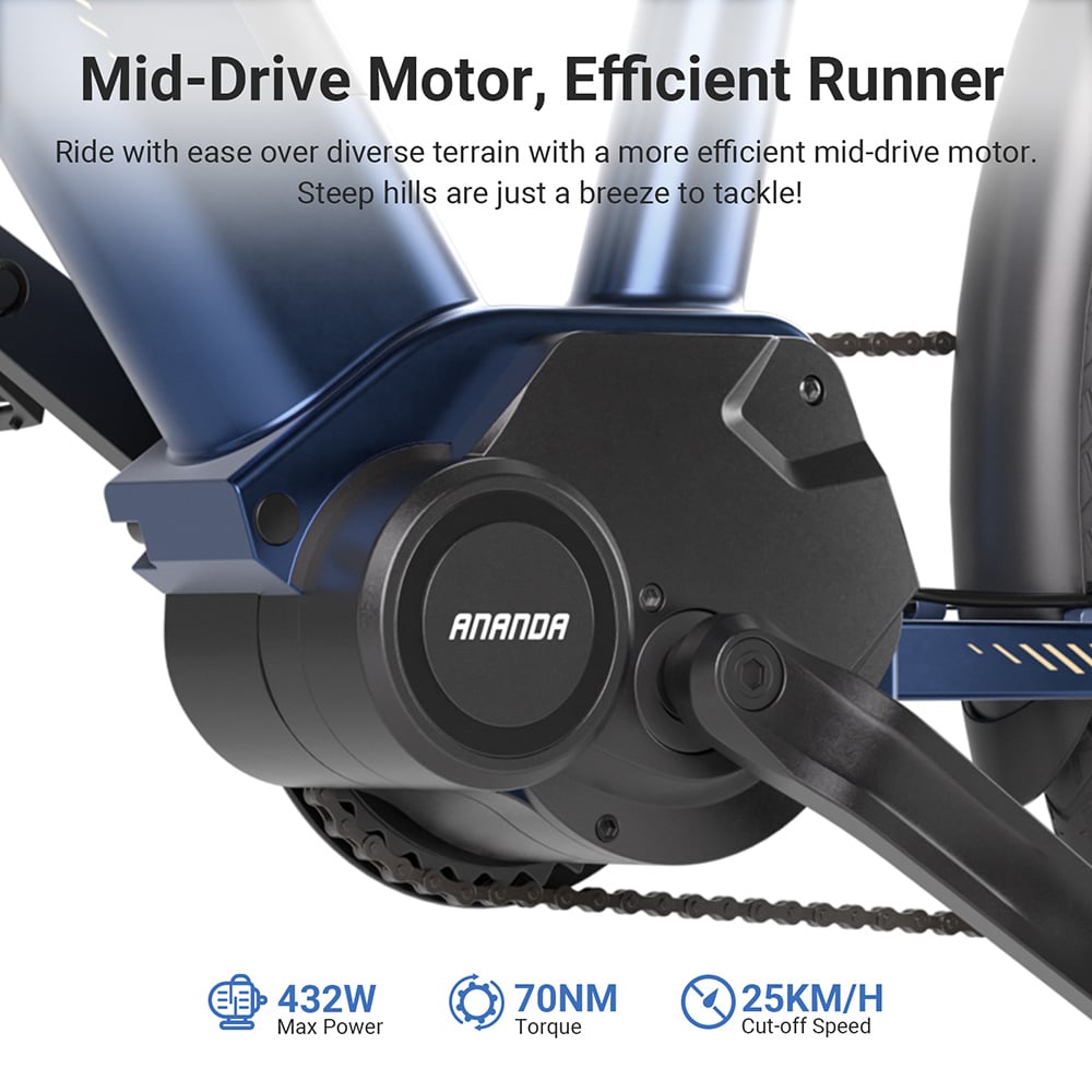 The Eleglide C1 comes with a 250 watt brushless motor that relies on a mid-drive. An impressive 70 Nm give you plenty of thrust, which is why the top speed of 25 km/h is reached in a flash. The 522 Wh replaceable battery provides a range of up to 150 km.