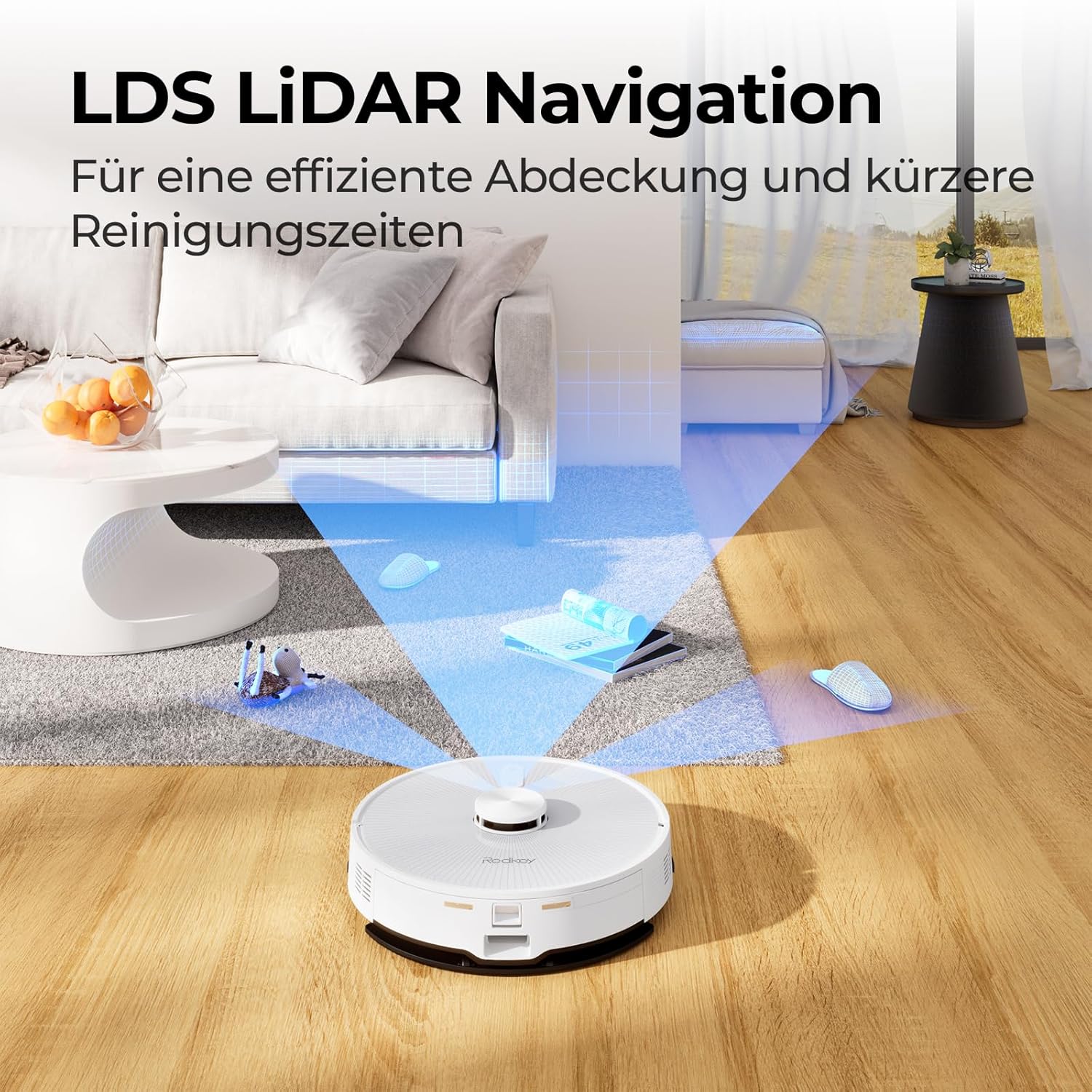 An outstanding feature of the Redkey R10 is the LDS laser navigation technology, which enables precise and fast mapping of the surroundings. This allows the robot to plan its cleaning path intelligently and avoids typical problems of conventional robotic vacuum cleaners, such as skipping areas or cleaning the same spot several times.