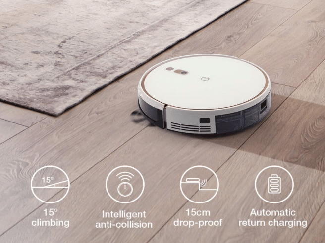 In its work, the little vacuum robot also takes care of itself. This means that Yeedi has integrated reliable collision and fall protection here. An infrared sensor is used here, which not only detects furniture and other objects that get in the robot’s way.