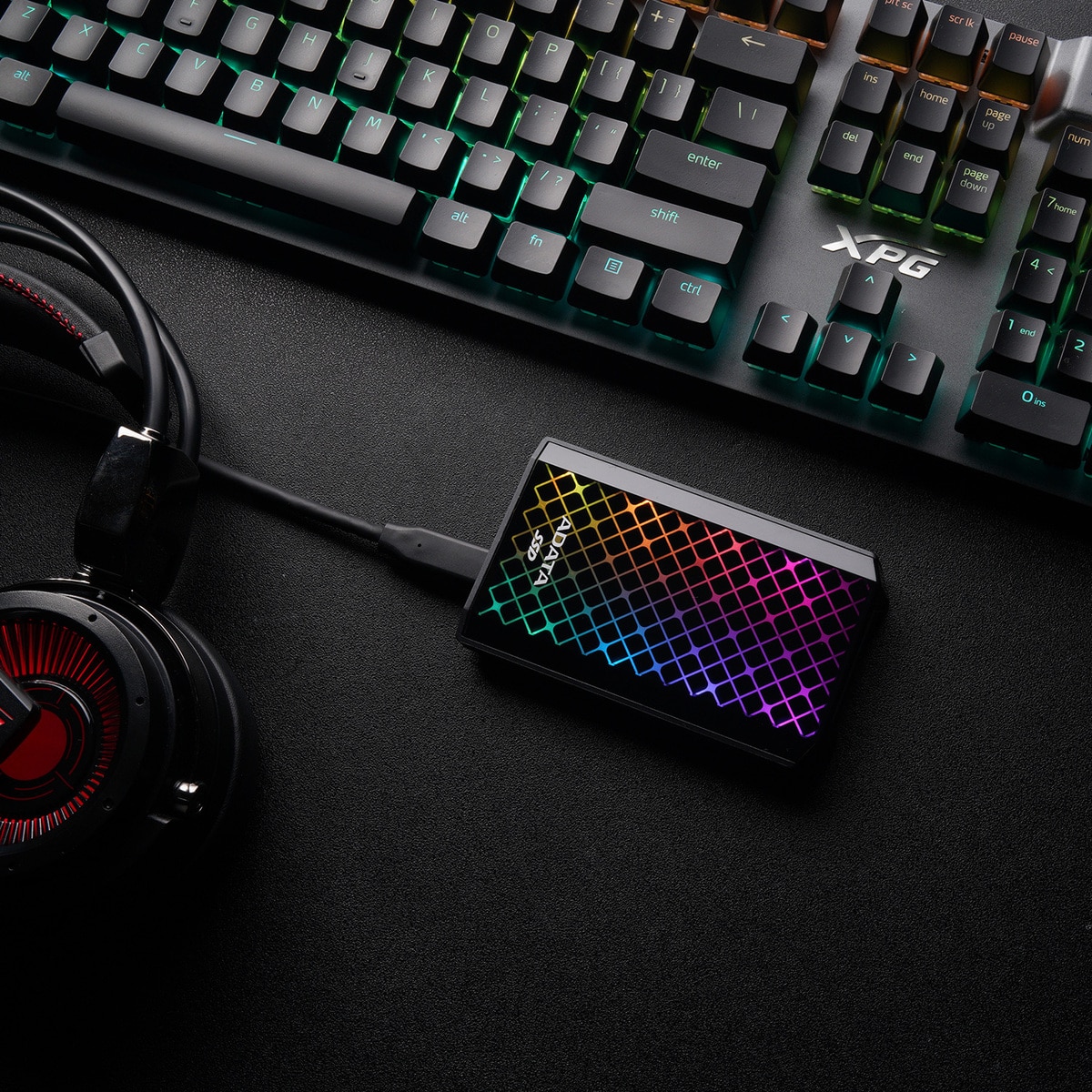 After all, it fits in perfectly with existing components with RGB. But ADATA also seems to have a lot up its sleeve here with performance. Thanks to speeds of up to 2,000 MB/s, it offers optimal conditions for gamers. Thus, it is an impressive 25 times faster than a classic magnetic hard drive. The linchpin for data transfer is the USB 3.2 Gen2x2 port of the external storage medium.