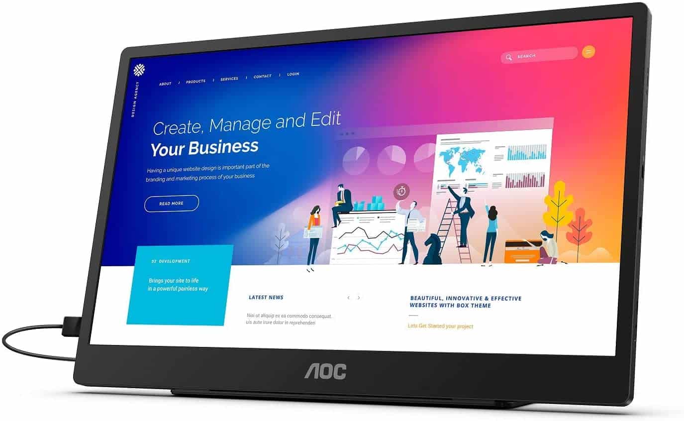 With the AOC 16T2, the display expert has introduced a practical additional display with a screen diagonal of 15.6 inches. The portable display comes in the form of a practical touch screen and offers great endurance thanks to its 8,000 mAh battery.