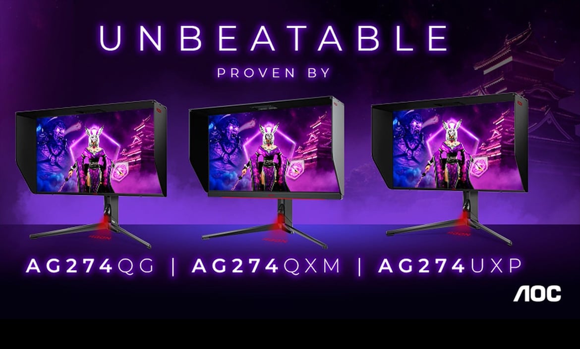 AOC expands its AGON PRO display lineup for competitive gamers, introducing a new 27-inch monitor trio: the AG274QXM (QHD at 170Hz) with mini-LED IPS panel and VESA DisplayHDR-1000 certification, as well as the AG274UXP (4K at 144Hz) and AG274QG (QHD at 240Hz), both four-sided frameless monitors with fast IPS panels and VESA DisplayHDR-600 support.