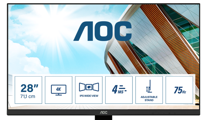 If you do not want to do without a high 4K resolution, but are already satisfied with 28 inches for this, perhaps the U28P2A is the right solution. Here, AOC scores again with a pretty frameless design. Despite the high resolution, an IPS panel is also used here, which covers 120 percent of sRGB and 89 percent of Adobe RGB.