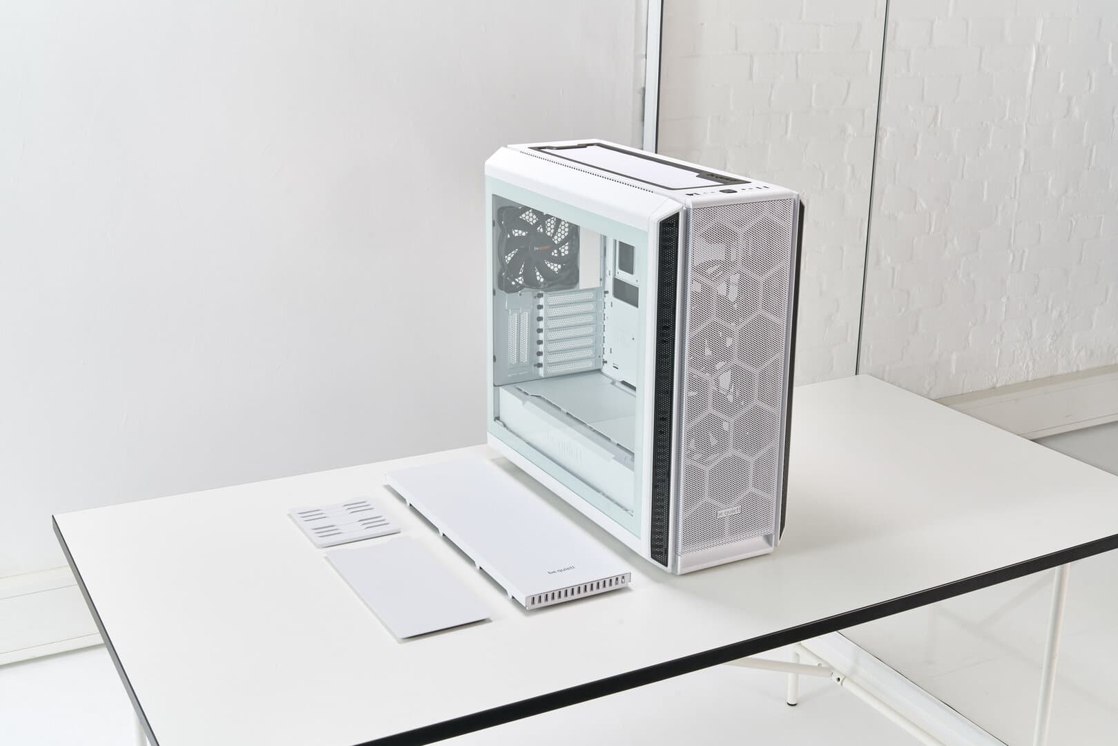 In contrast to its predecessor, be quiet! has turned a few set screws on the Silent Base 802. The manufacturer has made some changes, particularly in terms of flexibility. You can now choose between different front and lid parts. There is a choice between corresponding elements made of air-permeable mesh or a closed design. This is already the most visible innovation in contrast to the Silent Base 801. Otherwise, both generations are very similar. So the case still has the familiar stand on the bottom. However, you can’t see it on the official pictures of be quiet! It was simply not mounted. What the manufacturer has removed are the optional striking colors of the predecessor. Now you can only buy the case in black or white color. Another change can be seen by looking closely at the I/O panel. While the Silent Base 801 offered only a USB 2.0 port, the successor uses a USB-C port (3.2 Gen. 2). What change will upset many is the much higher RRP than the predecessor.