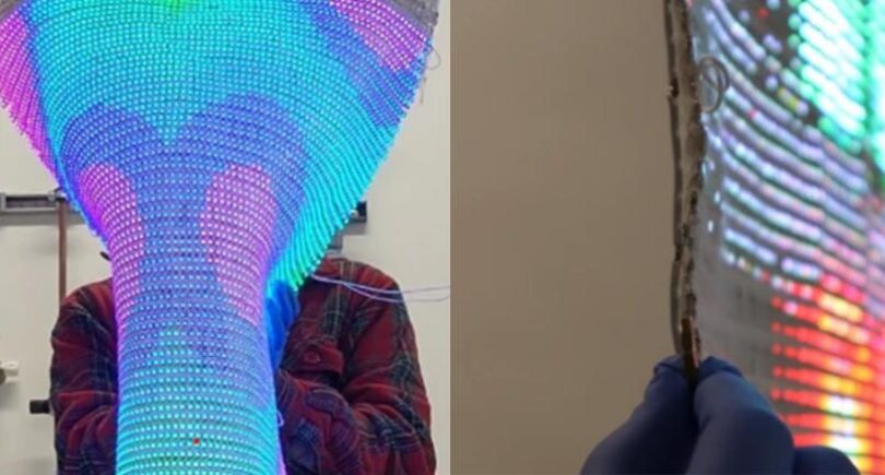 This piece of fabric is then supplemented by LEDs with the colors red, blue and green. To provide power, fine copper wires are woven into the fabric piece. Results of the experiment have now been revealed via Eenewseurope magazine. The said “fabric display” has a screen diagonal of 46 inches. The purpose of the whole thing, however, is not to attach the woven fabric like some kind of tapestry. Instead, it’s to be able to wrap it around objects to display those images.