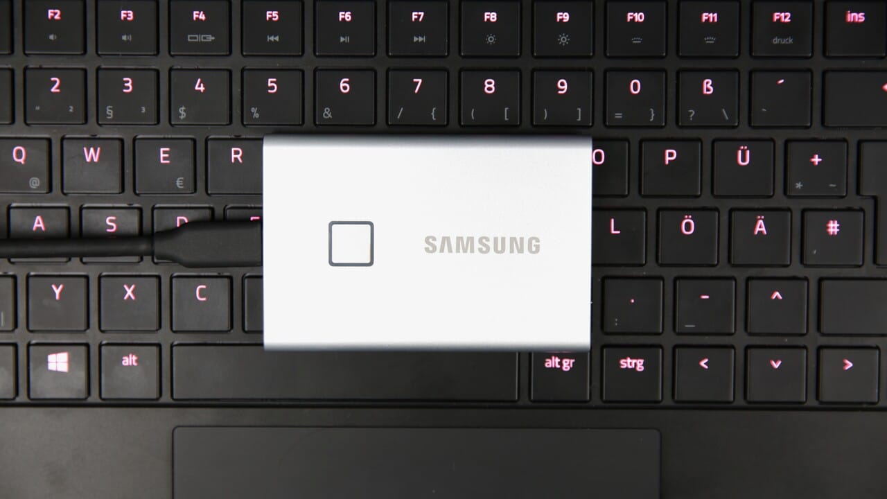 At this year’s CES in Las Vegas, Samsung introduced the successor of the popular portable SSD T5. The Portable SSD T7 Touch is supposed to distinguish itself above all through its extensive security features. For example, unlocking takes place via fingerprint sensor.