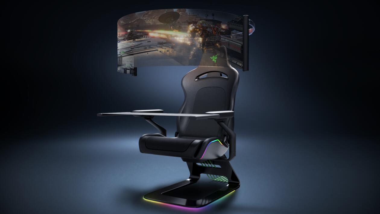 The combination of sheer size and the curved design should create an extremely large immersion for the player himself. However, not only console gamers should be able to benefit from this impressive “in the middle” feeling. Razer also installs a table next to the display, which offers space for the mouse and keyboard. This is in turn hidden in the chair’s armrests. With this, Razer clearly shows a possible future of gaming. After all, larger and larger TVs and monitors meet smaller and smaller living spaces. With a gaming station hidden inside a chair, you can use a huge gaming setup even in the smallest of spaces.