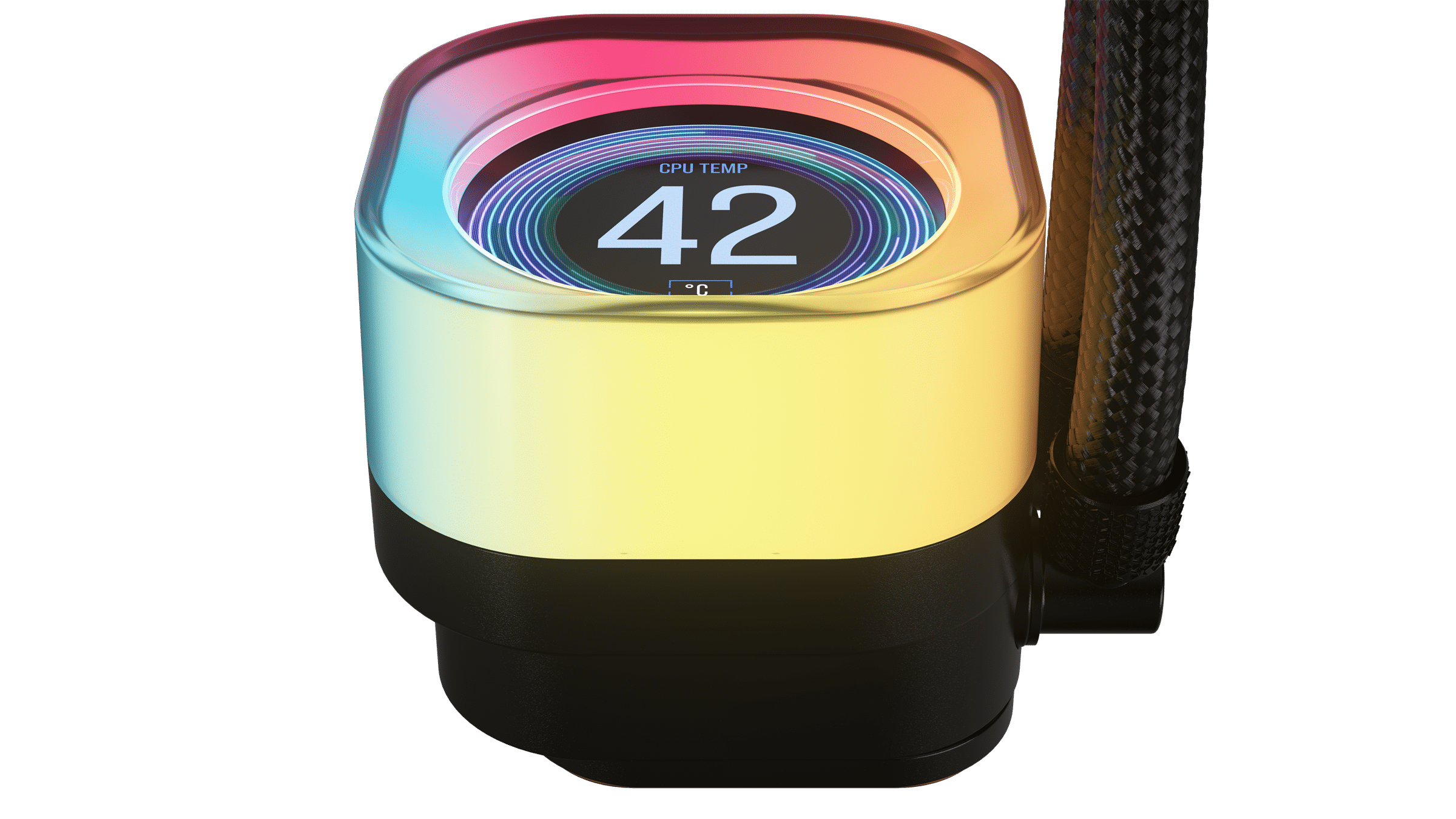 One of the outstanding features of the TITAN RX LCD is its 2.1-inch IPS LCD screen. With a resolution of 480 x 480 pixels and a brightness of 600 cd/m², the screen offers razor-sharp graphics and vivid colors. The display can be customized via the Corsair iCUE software. Whether preset designs, system information or personalized content – the possibilities are virtually unlimited.