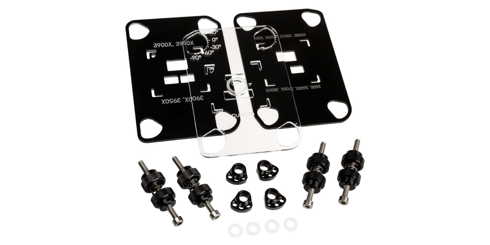 PC hobbyists can purchase the 8auer RYZEN 3000 OC mounting frames in two versions. There is the frame for AiO water-cooling systems, which is kept simple and therefore easy to mount. With the custom mounting frame, mounting looks a little more complicated. Custom watercooling systems usually also have custom heat sinks or differently shaped heat sinks. These have to be mounted differently. Fortunately, the custom mounting frame offers extremely flexible adjustment possibilities.