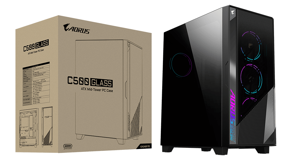 Gigabyte has introduced a new case for gaming setups. The AORUS C500 GLASS is supposed to provide the best conditions for powerful hardware. This is especially due to the design, which obviously has maximum airflow in mind. On top of that, even large-format water coolers should be able to find room inside the case. The manufacturer wants to complete its gaming case with sophisticated cable management, an easy installation of components as well as a pretty look including glass side and RGB lighting.