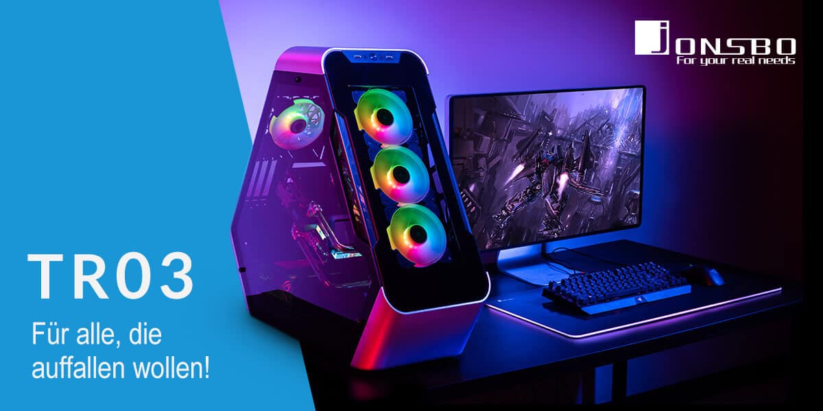 Features of the TR03-A version include a closed front, while the TR03-G is equipped with an additional glass panel. This makes the built-in radiator visible. Features such as RGB lighting make the case even more futuristic.