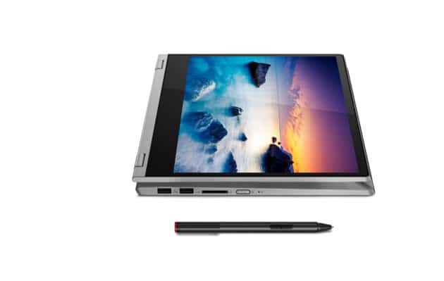 The IdeaPad C340 is a 2-in-1 device in the bundle. It has a 360 Grand hinge to fold the lid completely around the body. It can be operated with the finger, some models will get ActivePen support. From May there will be a device with AMD processors with 14-inch screen from 500 euros. You get a bigger display with Intel-CPU. These variants are available from April for 600 Euro.
