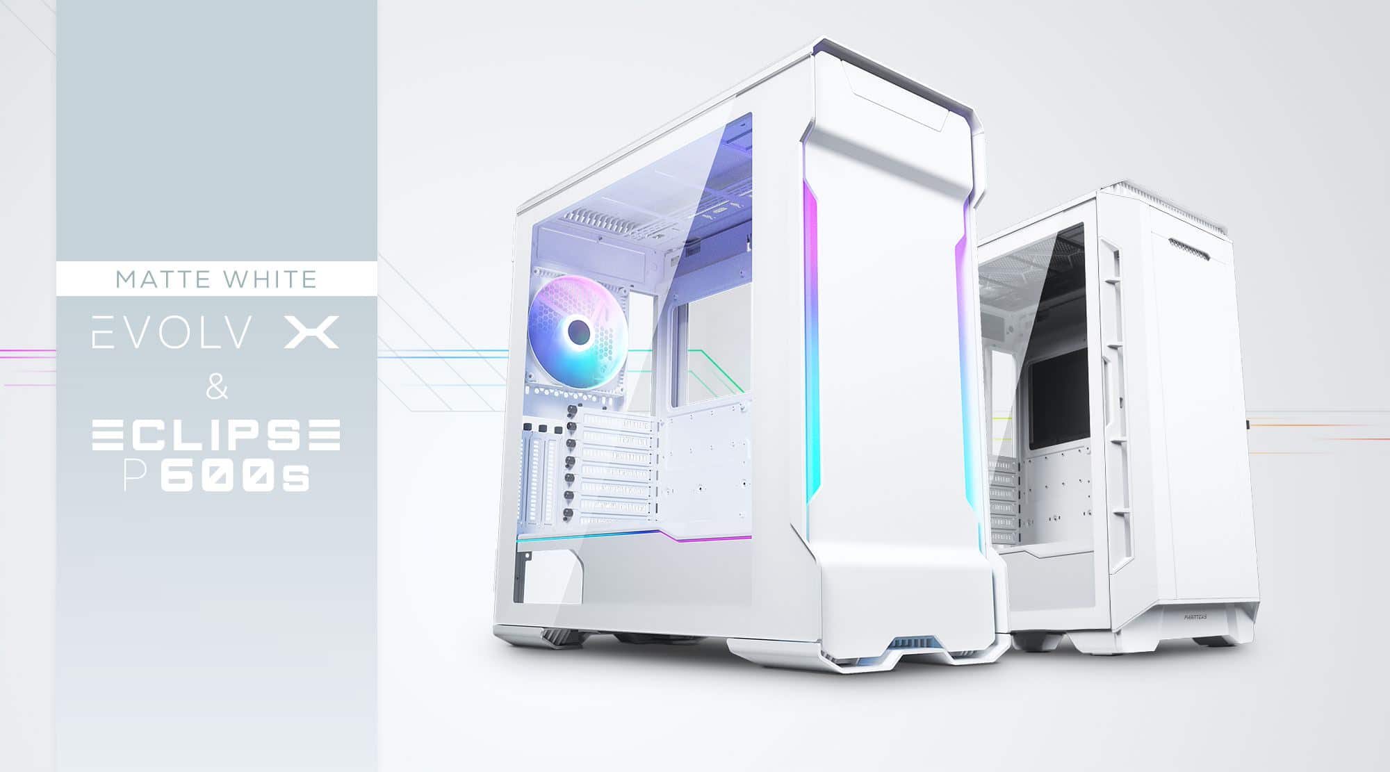 Phanteks has made some exciting new announcements. With the new Eclipse P600s and Evolv X in the Matte White Edition, two new chic cases in a noble white tone are coming to retail. The hardware expert has also announced matching cables with its Gen 4 PCIe riser cables.