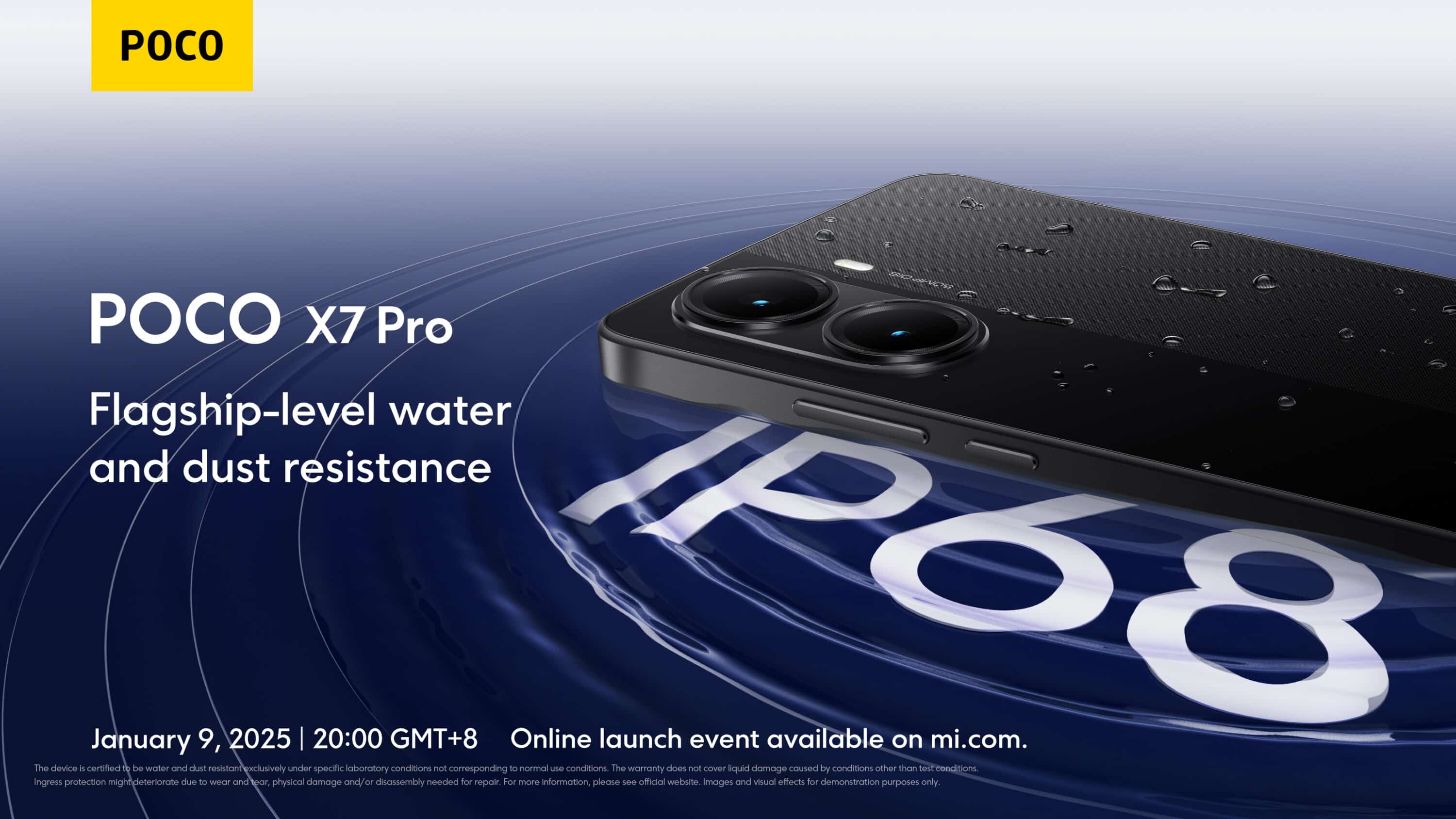 - IP68 water and dust resistant: The POCO X7 Pro is water and dust resistant and can withstand accidental spills, rain or dusty environments.