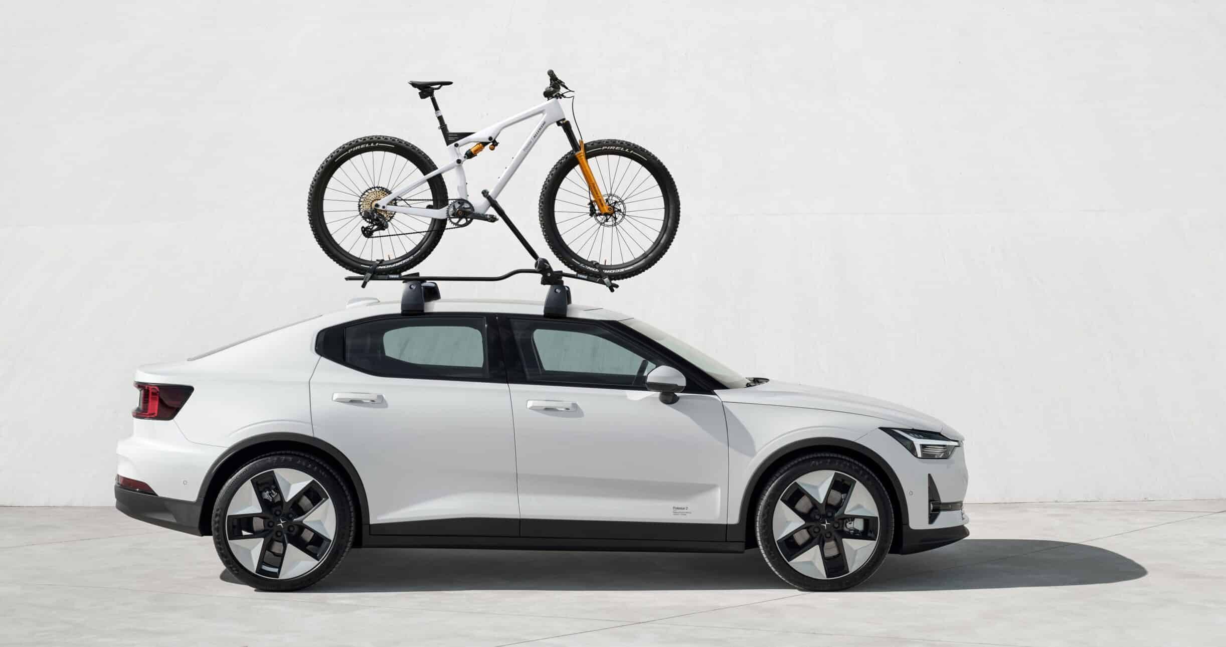 In the picture released as part of Polestar’s press release, you can see how the mountain bike is perched on the roof mount of a Polestar 2. Connoisseurs of Allebike will recognize here that in its basic form the bike is a model that is already available. The Swedish family-owned company relies on its popular Alpha model for its cooperation with Polestar. In particular, Polestar emphasizes that they have collaborated with Allebike on the frame of the bike. Similar to the Volvo subsidiary’s vehicles, only high-quality materials are used here. For example, the frame relies on a lightweight but also rigid construction, which is achieved by using plastic reinforced with carbon fiber.