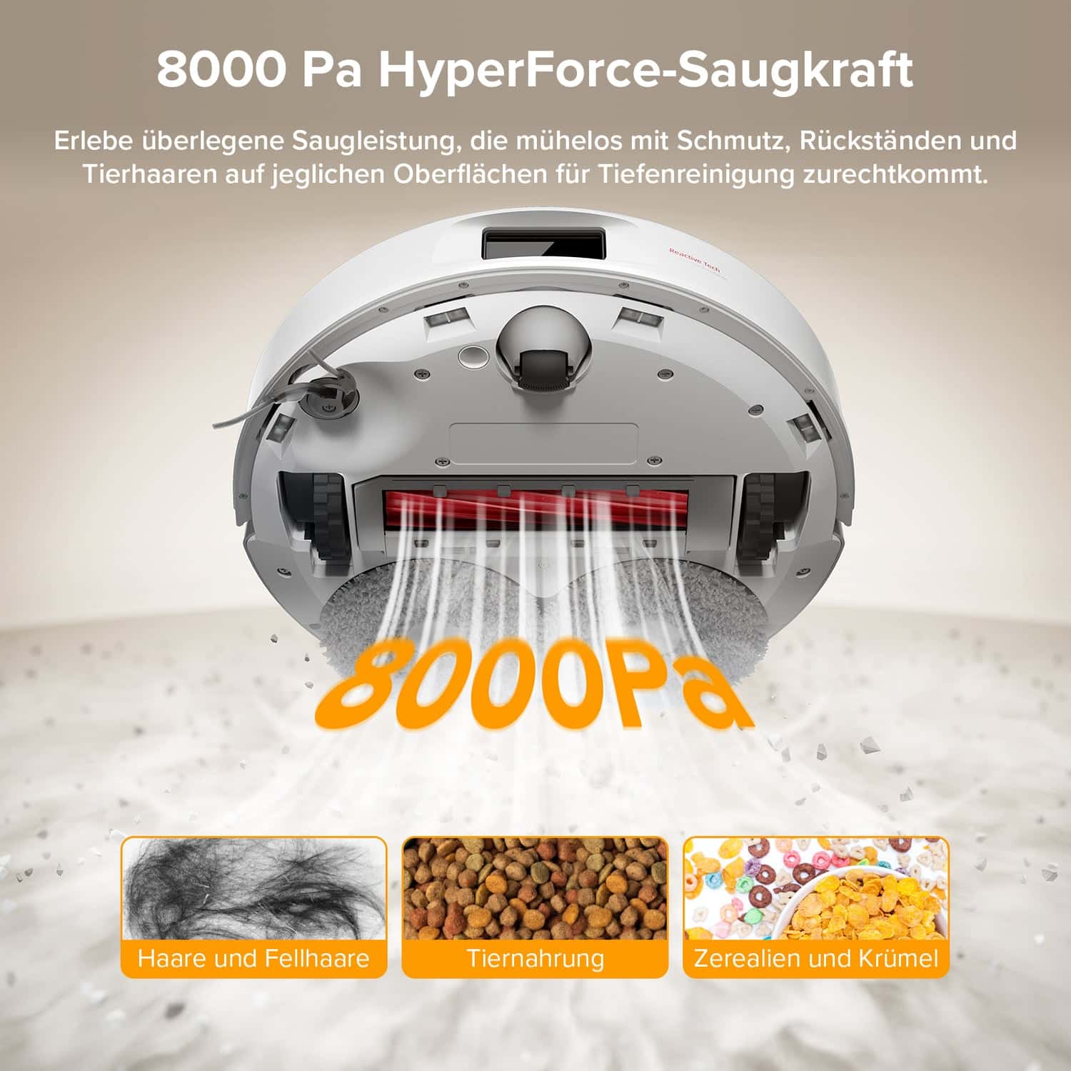 - With 8,000 Pa suction power, laser navigation and an automatic cleaning station, it offers powerful features at an attractive price.