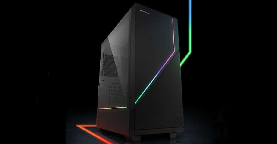 The recently introduced Sharkoon RGB Flow reminds at first glance of the Phanteks Eclipse P350X (test result “Excellent”), but with an introductory price of only 55 Euro is somewhat cheaper. The design of the midi tower is dominated by the LED strip that runs from the front below the left side window to the end of the case. The colour of the LED strip can be changed via the integrated control unit, which can also address four other RGB components. A total of fourteen light modes are supported. Alternatively, the LED strip can also be controlled by the motherboard, if a 5V-D-Coded-G or V-D-G header is available. This is for example the case with the MSI Mystic Light Sync ASRock Polychrome, Asus Aura Sync and Gigabyte Fusion.
