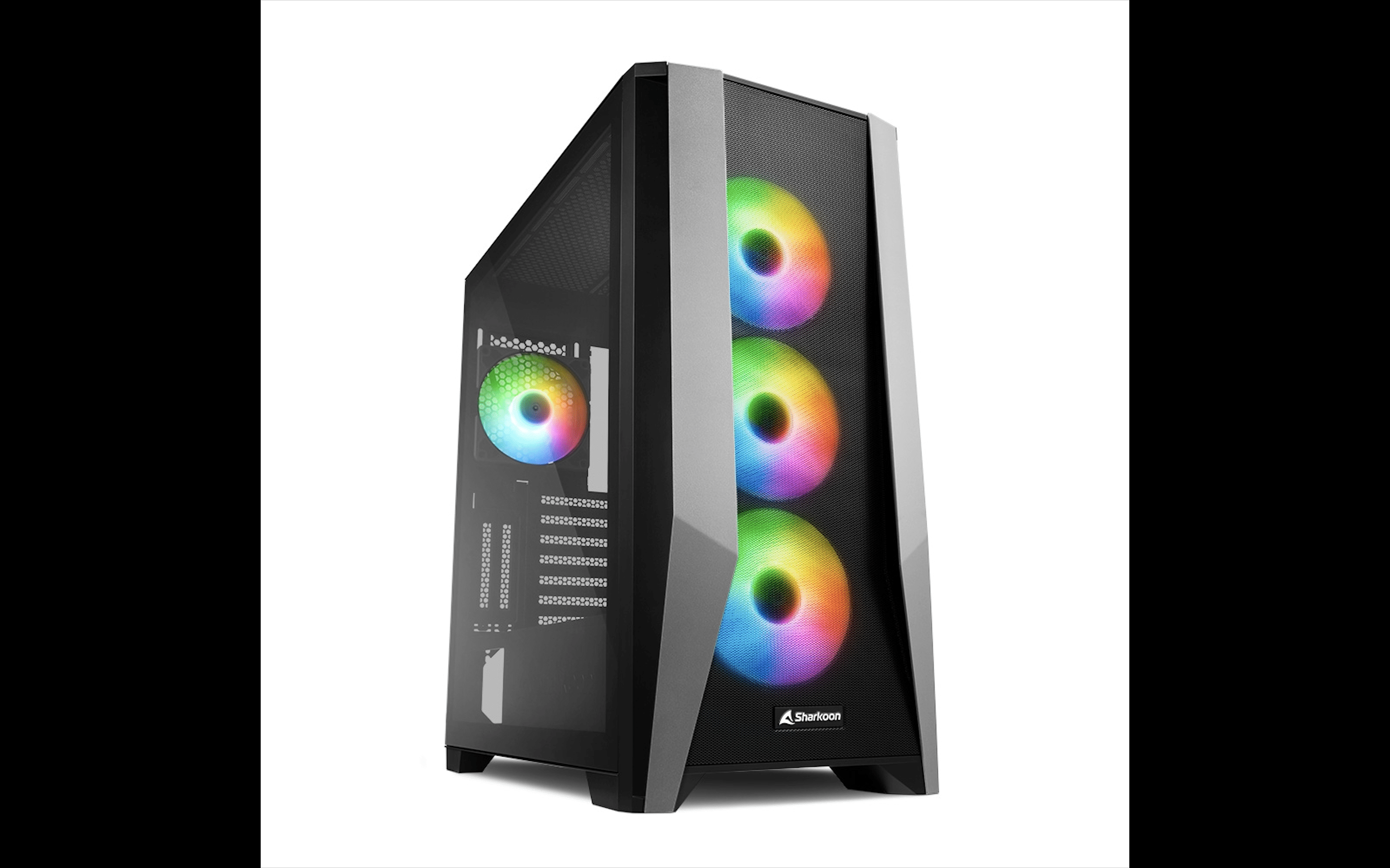 Nowadays, a hardware manufacturer should of course by no means neglect the looks. Sharkoon itself calls its new TG7M RGB an “elegant appearance”. Basically, the company also relies on a classic design for its latest ATX case, which comes with clear corners and edges. However, a look at the front reveals the modern mesh panel, which is framed by two chic metal elements.