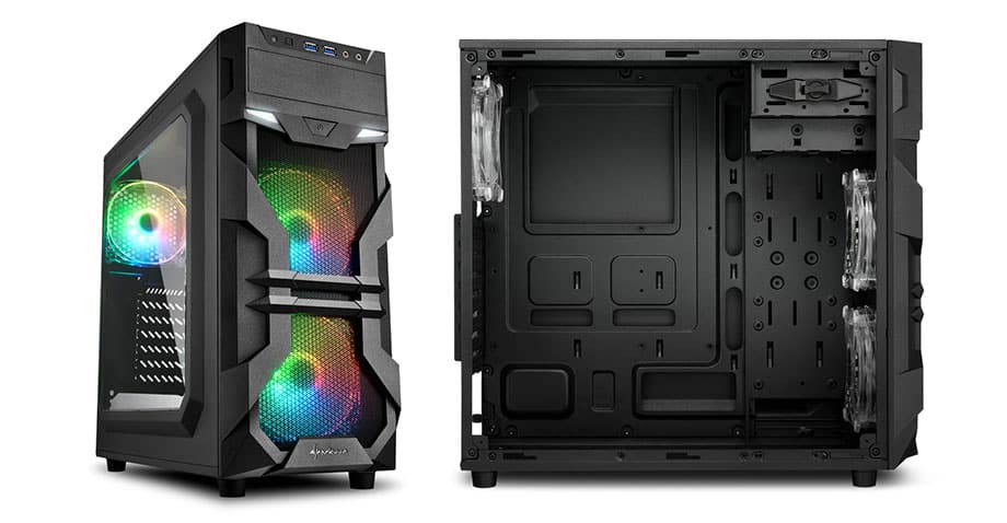 Sharkoon introduces the ATX case VG7-W, a midi tower with a large acrylic window and LED fans. A cheap variant of the case has monochrome fans, for 10 Euro more there is RGB on the eyes.
