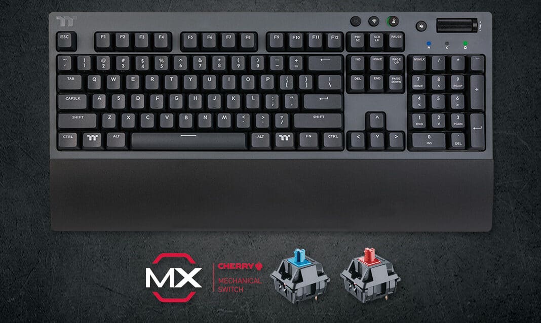 With the Wireless W1 keyboard, Taiwanese gaming specialist Thermaltake presents a model equipped with Cherry MX mechanical switches.