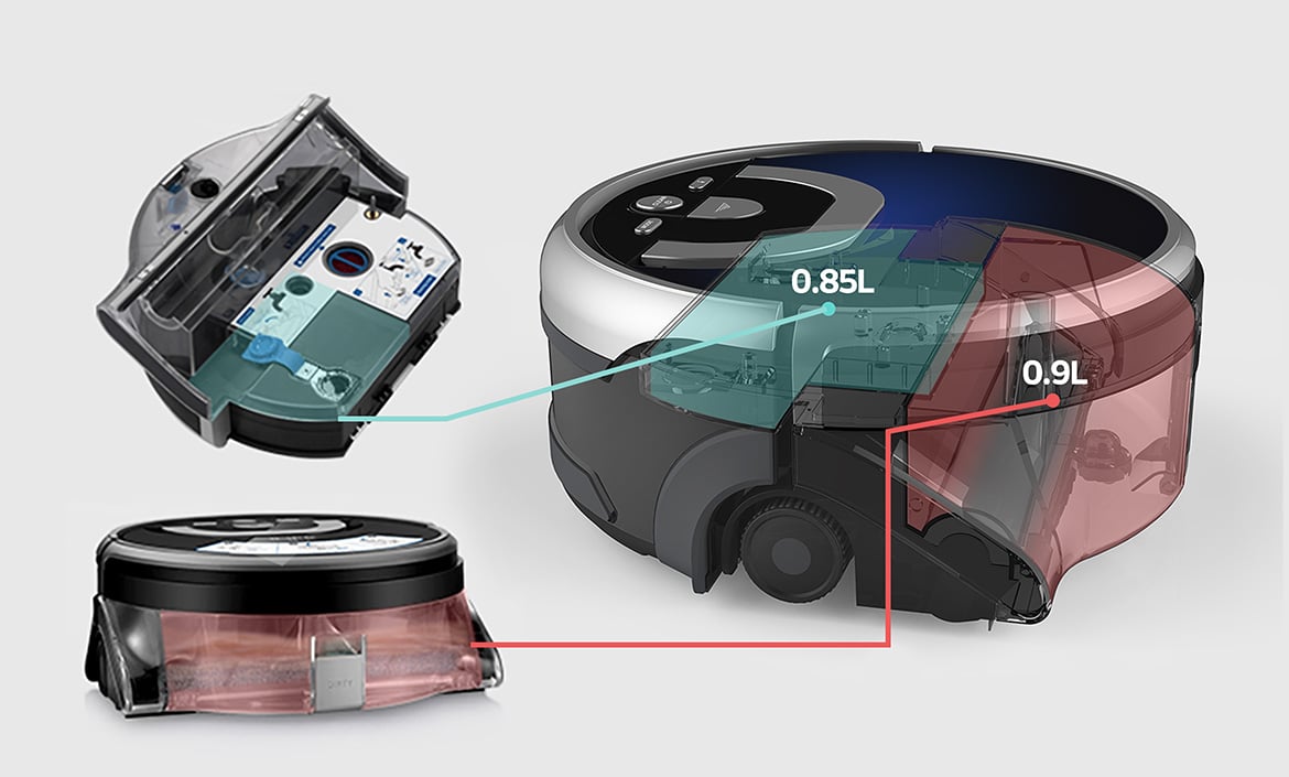 The wet vacuuming robot can operate in three modes, each of which covers different needs. In Path mode, the maximum possible area is cleaned once, while in Area mode only a predefined area of a maximum of 25 square meters is processed, and in Spot mode a small area is cleaned very intensively. From the weekly basic cleaning to the removal of accidental shoe marks to spilled sauce, all cleaning occasions of everyday life can be processed.