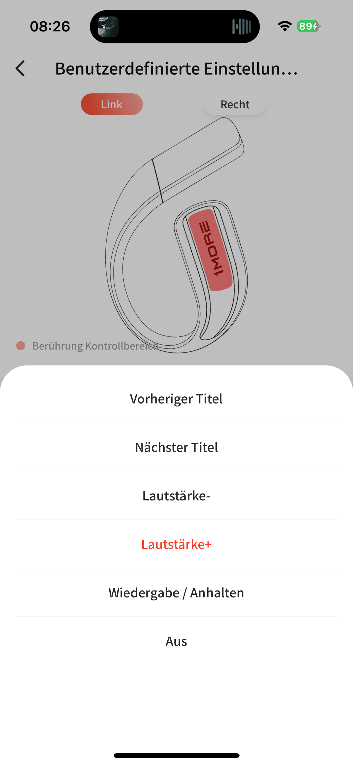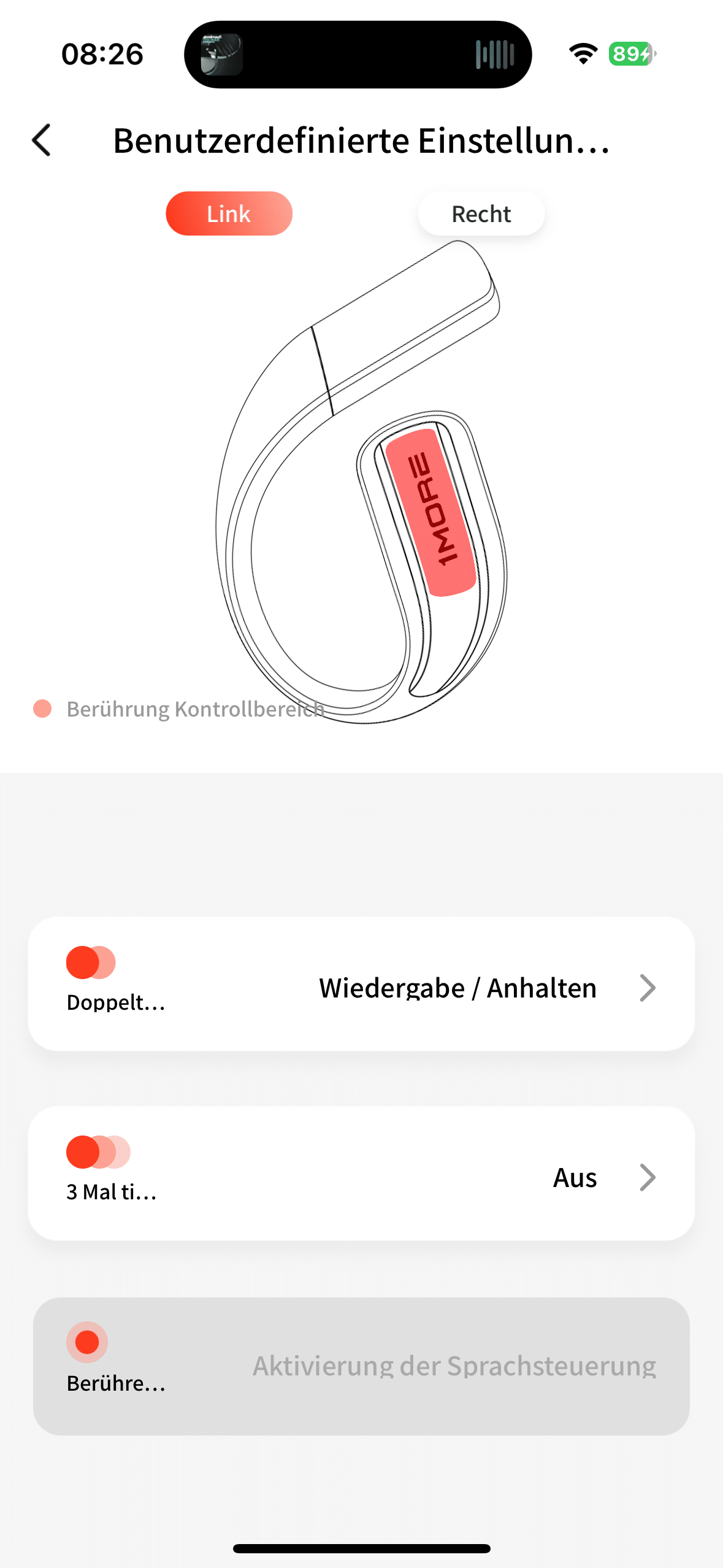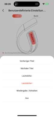 Within the app, however, you can set different actions for double and triple tapping and do this individually for both sides. This allows you to adjust the volume or skip to the previous or next track, for example.