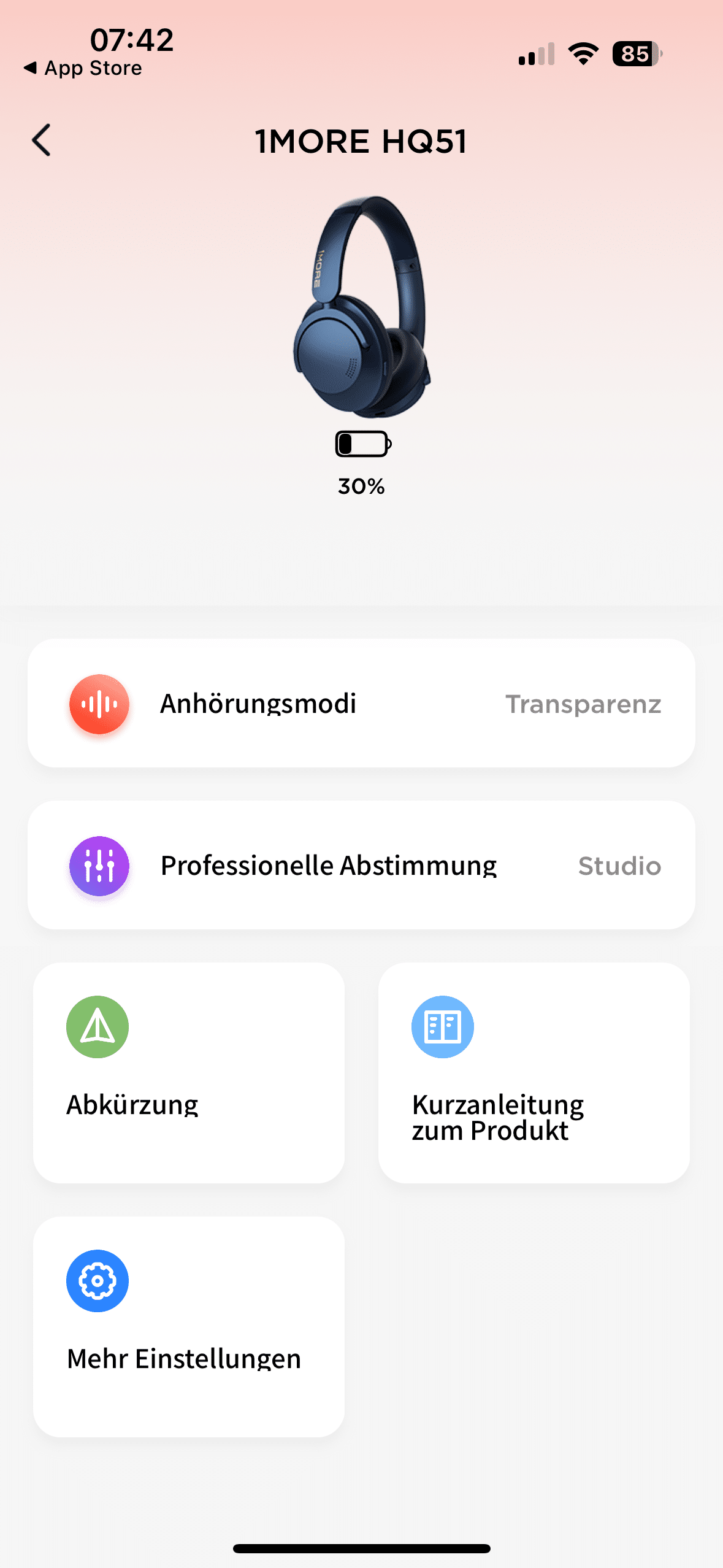 Intelligent burn-in is also possible, which I find very practical. After all, headphones need a certain amount of time to develop their maximum sound potential. With intelligent burn-in, the 1MORE SonoFlow Pro plays an annoying hiss for a whole 12 hours (!) to get the 40 mm drivers on track.