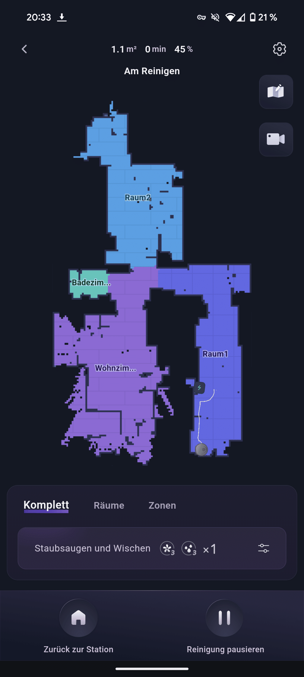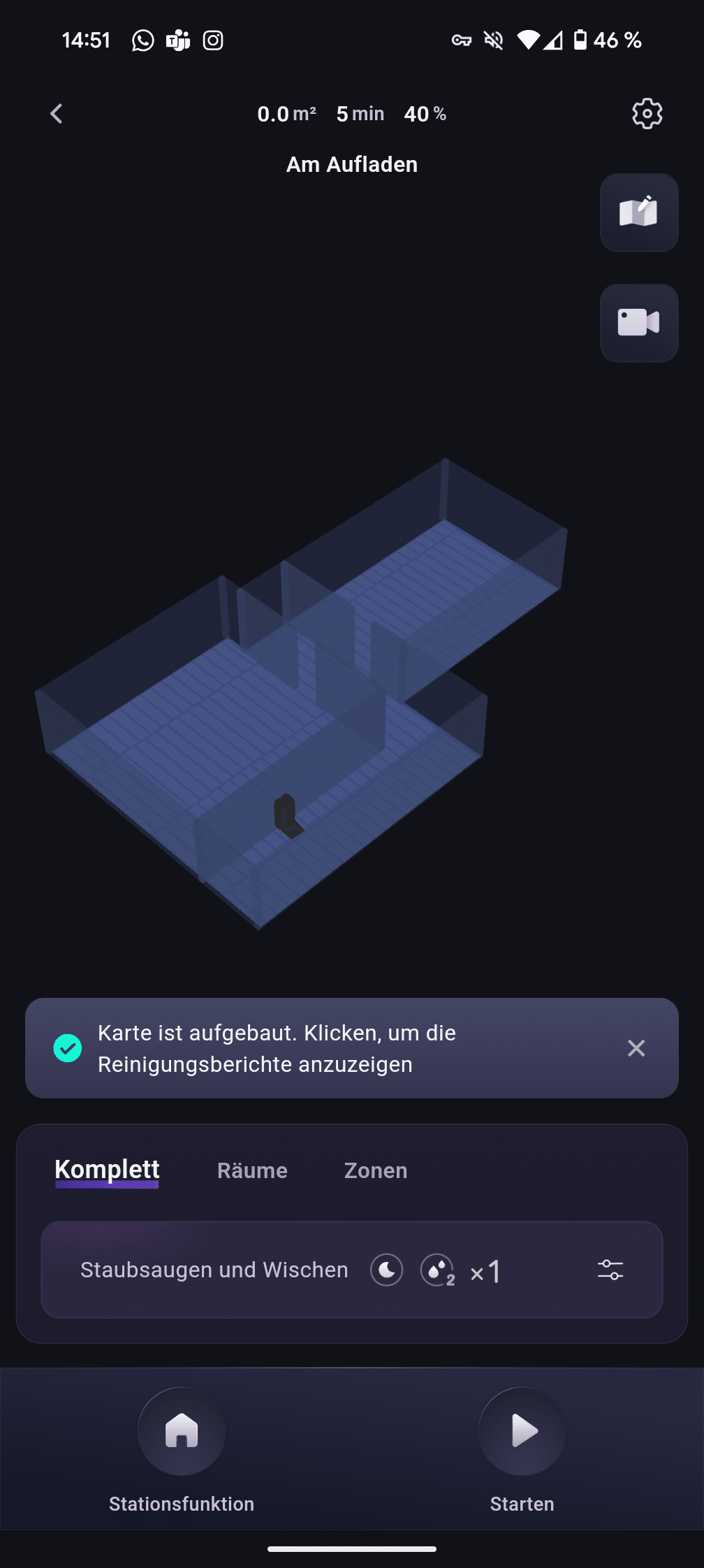 Particularly amusing are the translations, some of which have a Rhenish touch – the robot is then “wiping”, “cleaning” or “charging”. Other testers find the “clumsy translation” more annoying, but we found it rather charming and had to smile. Functionally, everything is there, even if some untranslated terms do creep in. 3i could make improvements here, but it doesn’t really affect use.
