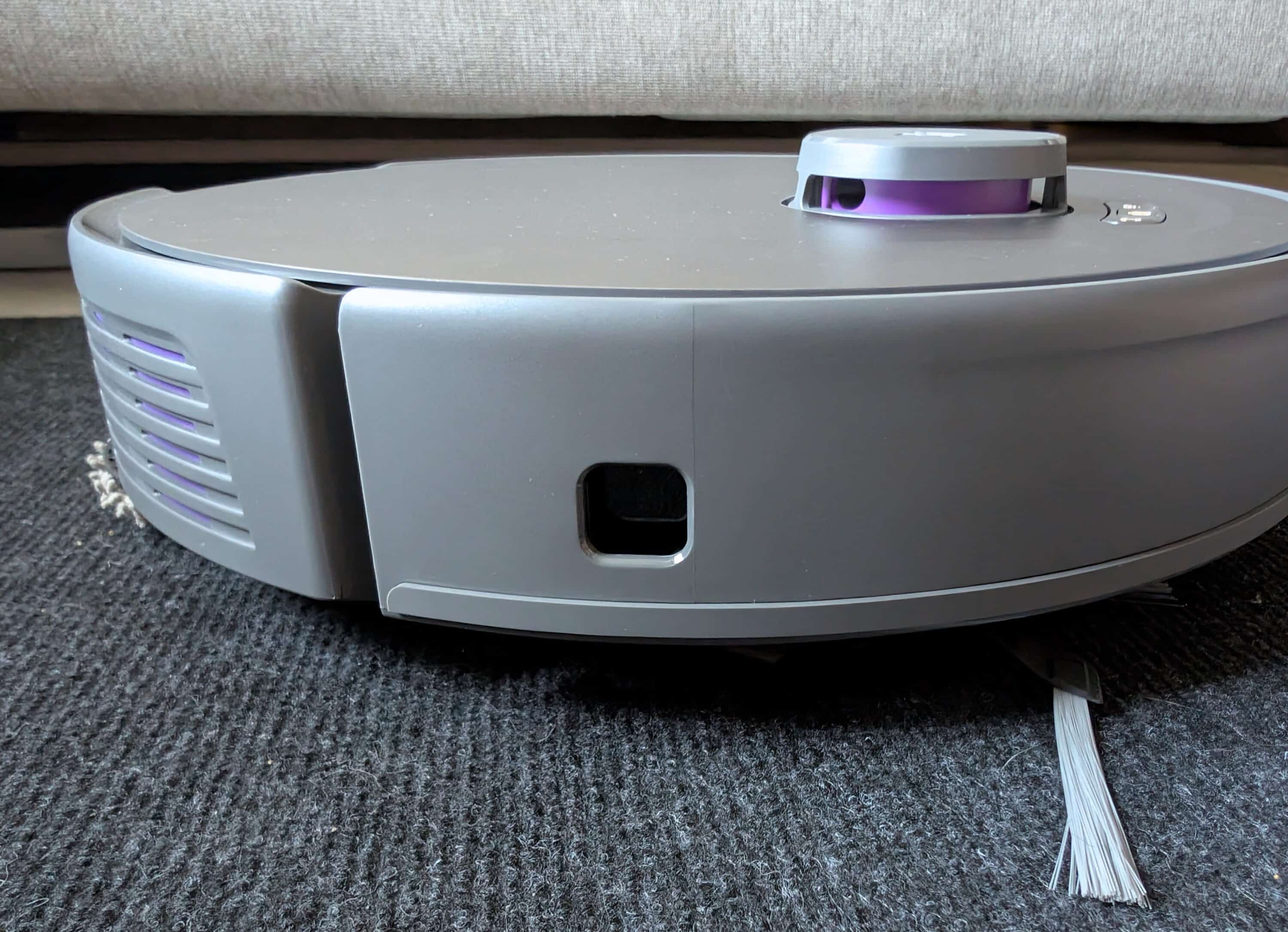 The 5 cm safety distance around detected cables also leaves dirt in the immediate vicinity. In very tight corners, jamming occasionally occurs – the 10 cm height and the sensor system, which does not fully cover 360°, lead to navigation problems in some situations.