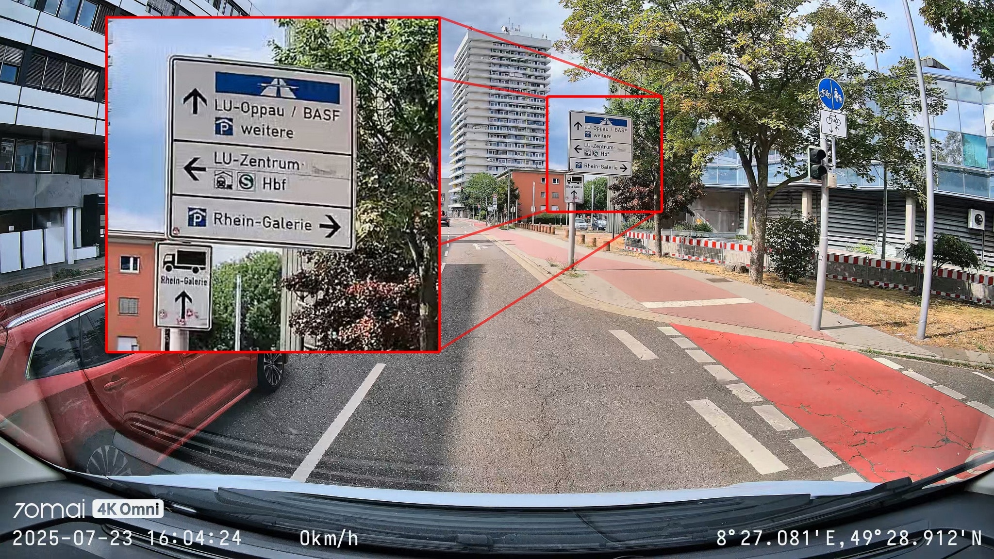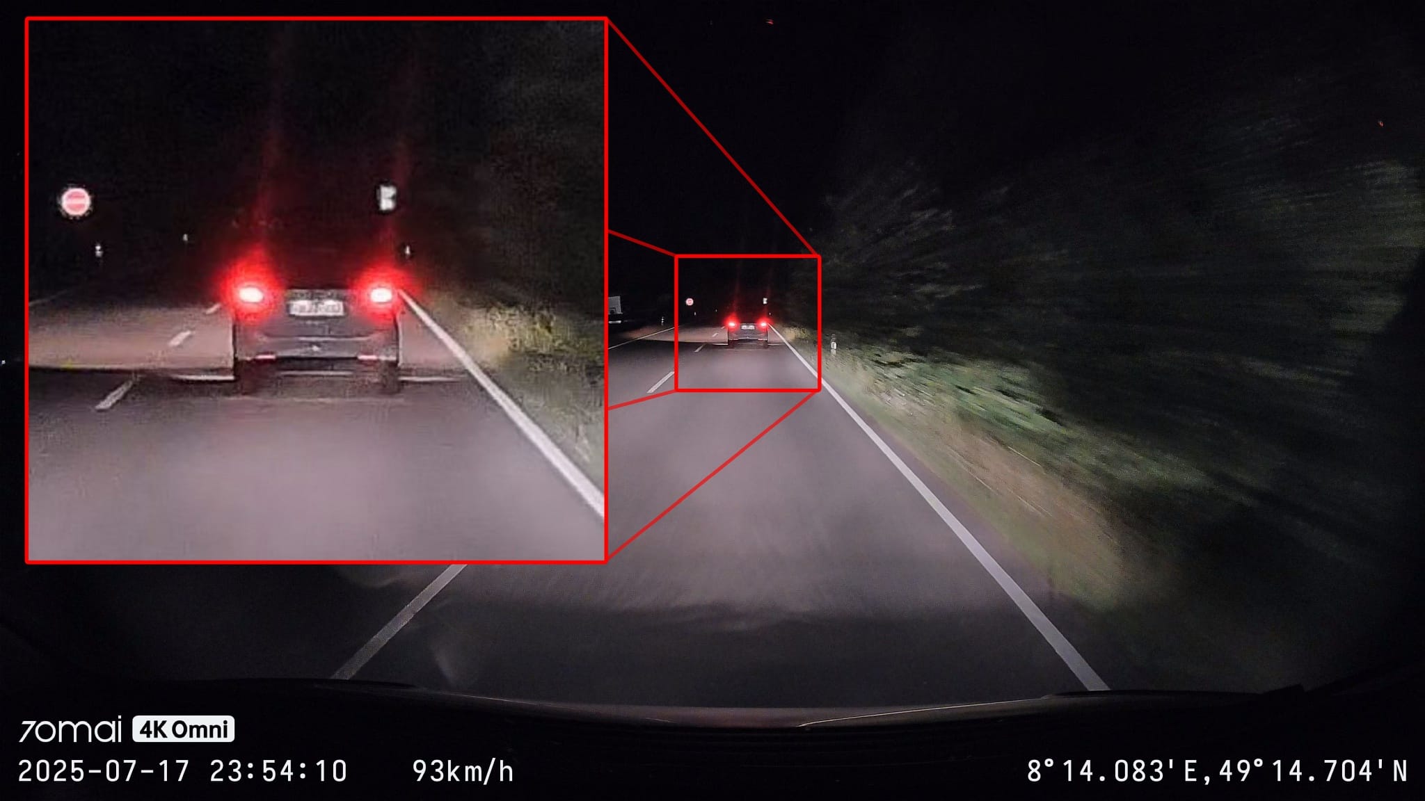 Personally, I would have preferred a slightly larger focal length, which would have cut away the barely usable border in favor of a larger display of the remaining image area. Because even if the lettering and license plates are more legible towards the middle, they are often so small with the extreme wide angle despite the 4K resolution that you have to be quite close to the car to be able to see anything accurately. License plates of cars in oncoming traffic are usually unrecognizable when driving, especially at night.