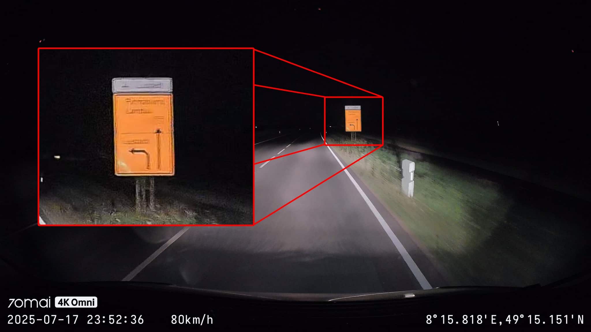 At night, the visibility of details is generally quite limited, so lettering, license plates and signs are difficult or impossible to read. During the day, on the other hand, this is not a problem: there is no need for so much noise reduction, which could smear the details. The license plates are easier to read here, both in the center of the picture and at the edge, and occasionally license plates in oncoming traffic are also legible. Of course, you have to pause and look at still images for this – in motion, this happens too quickly to be recognizable. That doesn’t help at night either.