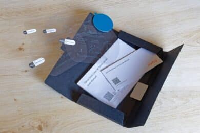 At the bottom is another flat box. This contains the instructions for the front camera in a total of 16 languages and separate instructions for the rear camera in five languages. However, German and English are always included and are also easy to read and understand. It also contains the adhesive surfaces for mounting the cameras.