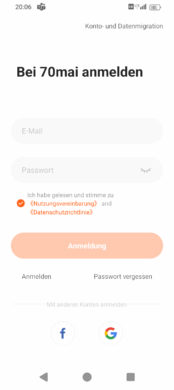In addition to voice control, you can also use a smartphone app to control and download videos and images if you don’t want to remove the memory card directly from the 70mai Dash Cam 4K Omni and insert it into a computer. This app is available for Android and iOS. However, you have to create an account with a stored email address, which is also used to send a code for verification.