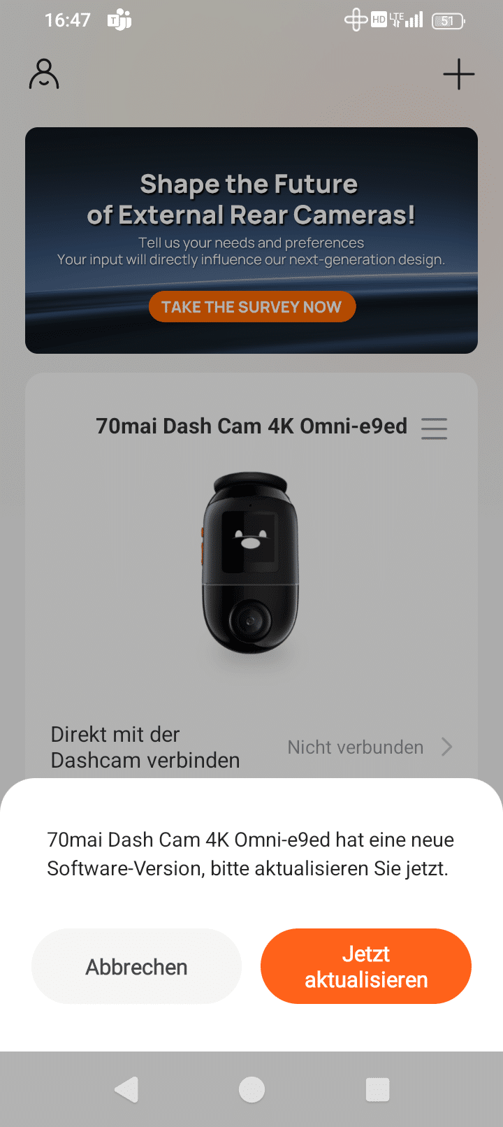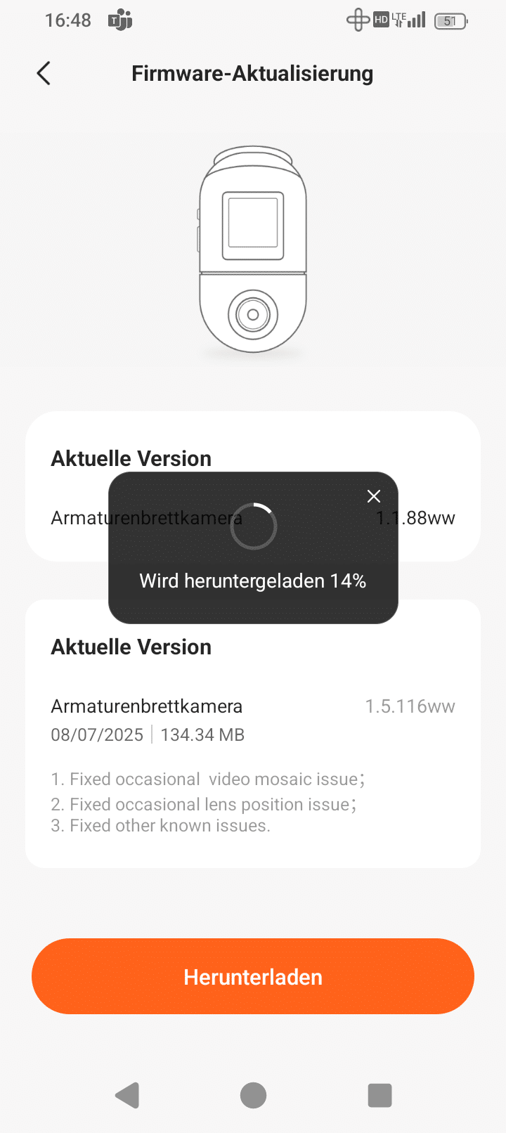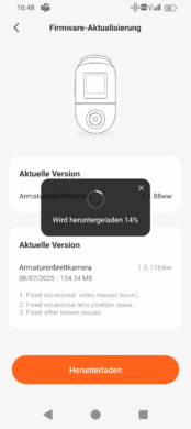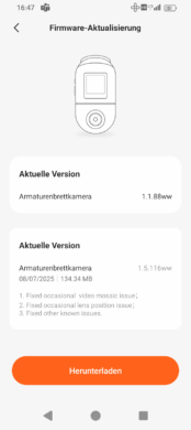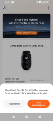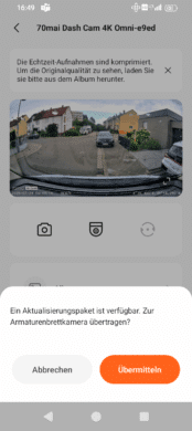 As you would expect, there are also occasional updates for Dash Cams. These mainly concern bug fixes. In the case of 70mai, these updates are displayed in the app as soon as you start it. The process is quite simple: the connection to the camera must be established, then you can download the new firmware and send it to the camera.