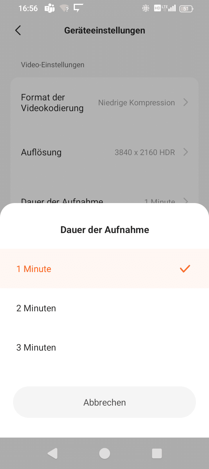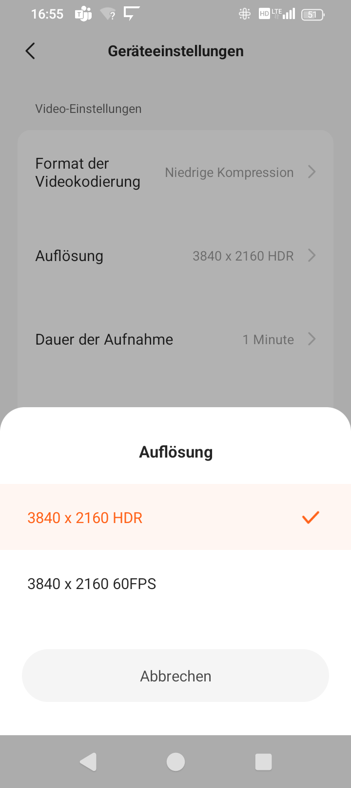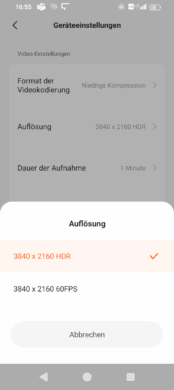 If you have set the low compression, the app will remind you every time you start it if your smartphone also supports high compression, but videos will then be saved with the more common H.264 codec. For example, my video editing program, Blackmagic DaVinci Resolve, can handle this natively, while the files with the factory-set “high compression” must first be converted.