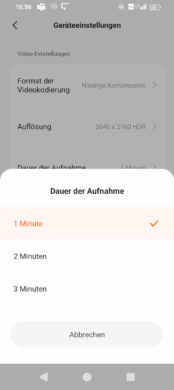 Speaking of storage: the video files are saved in H.265 as .mp4, which is a better, newer compression than the more common H.264, but there are programs and end devices that have problems with this codec.