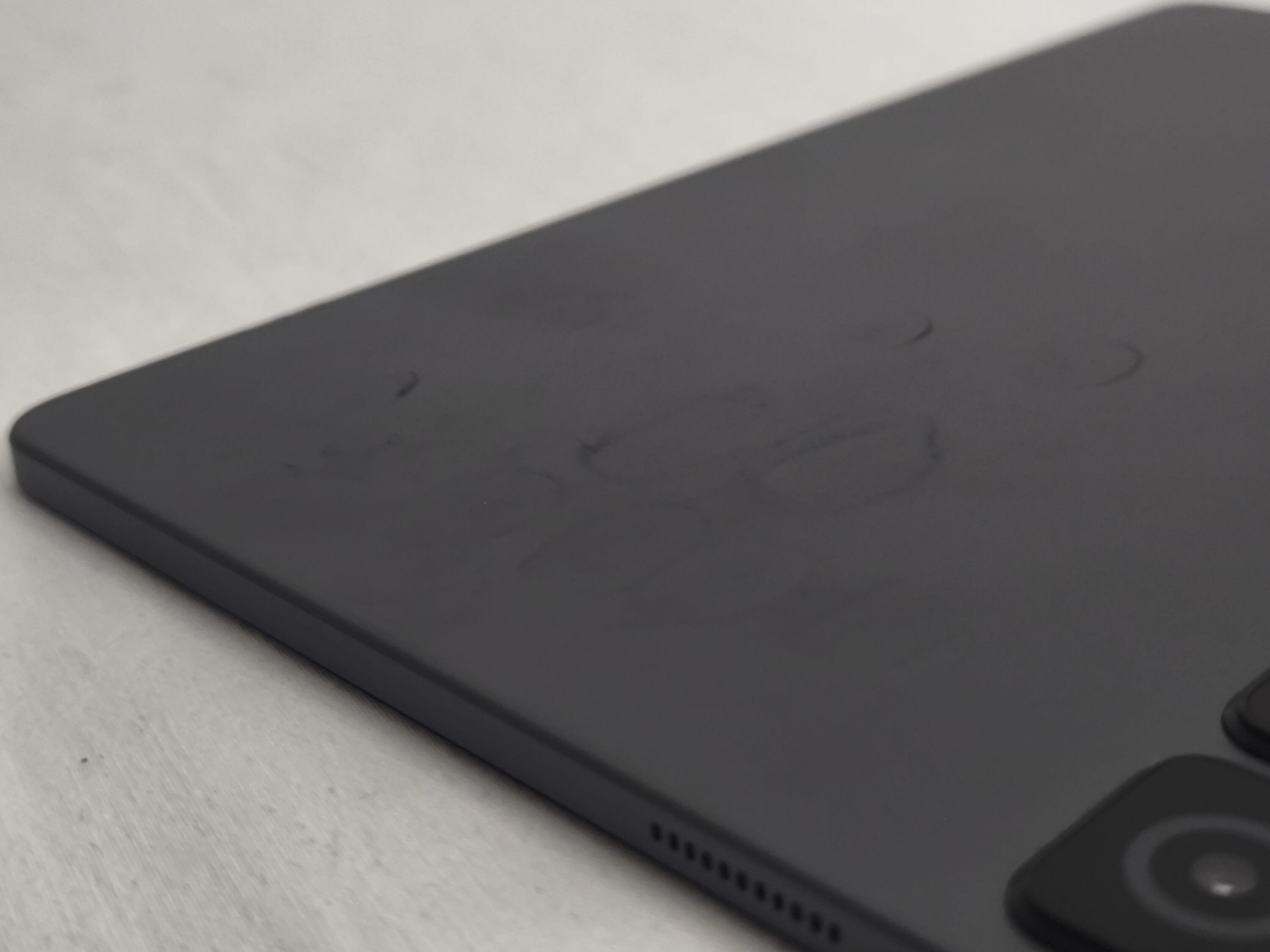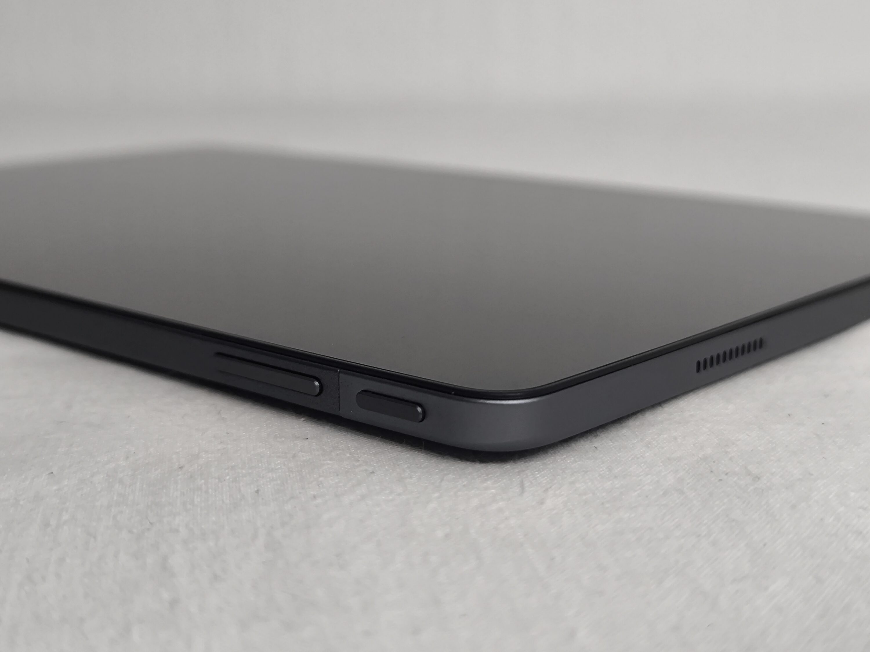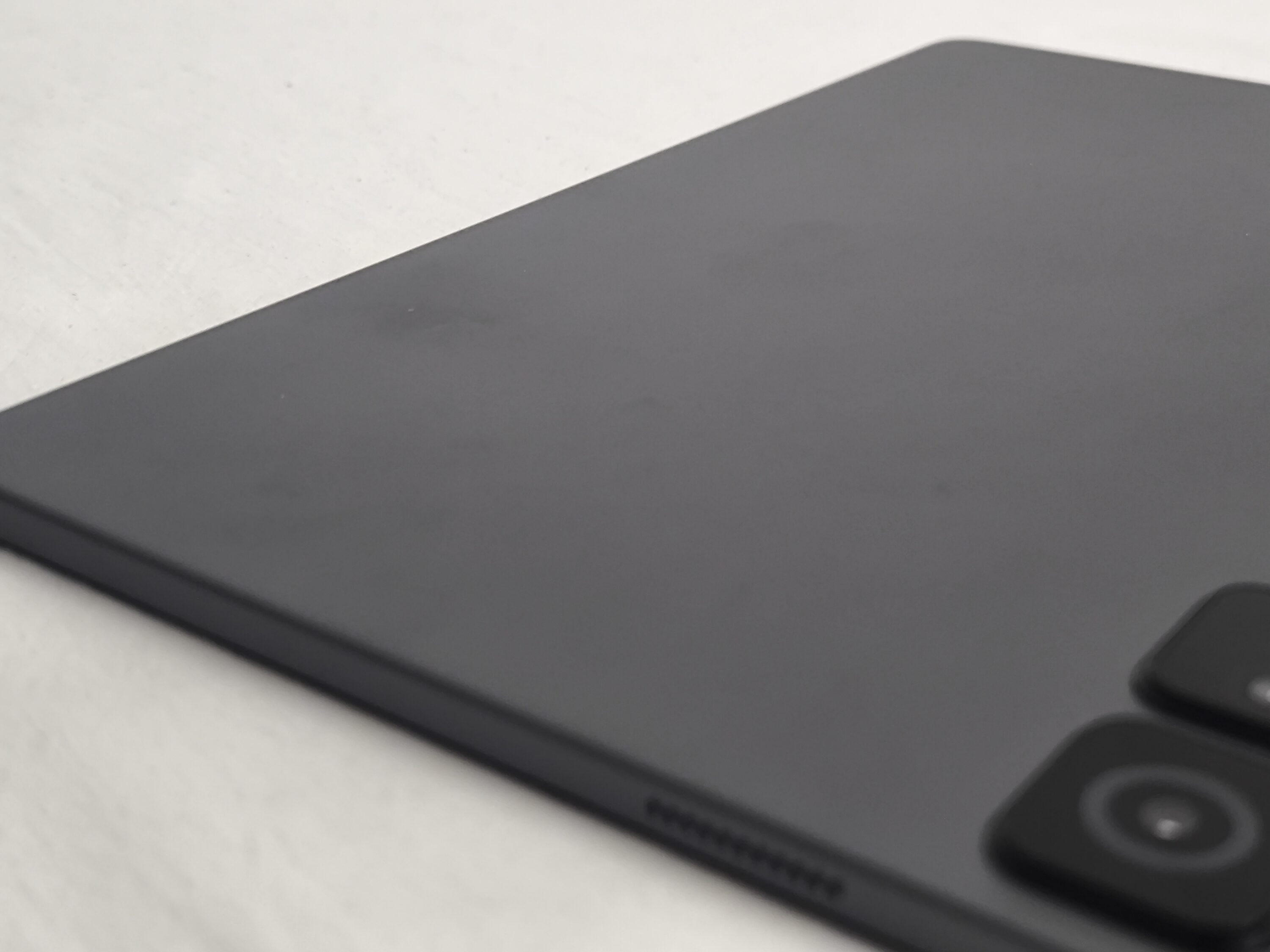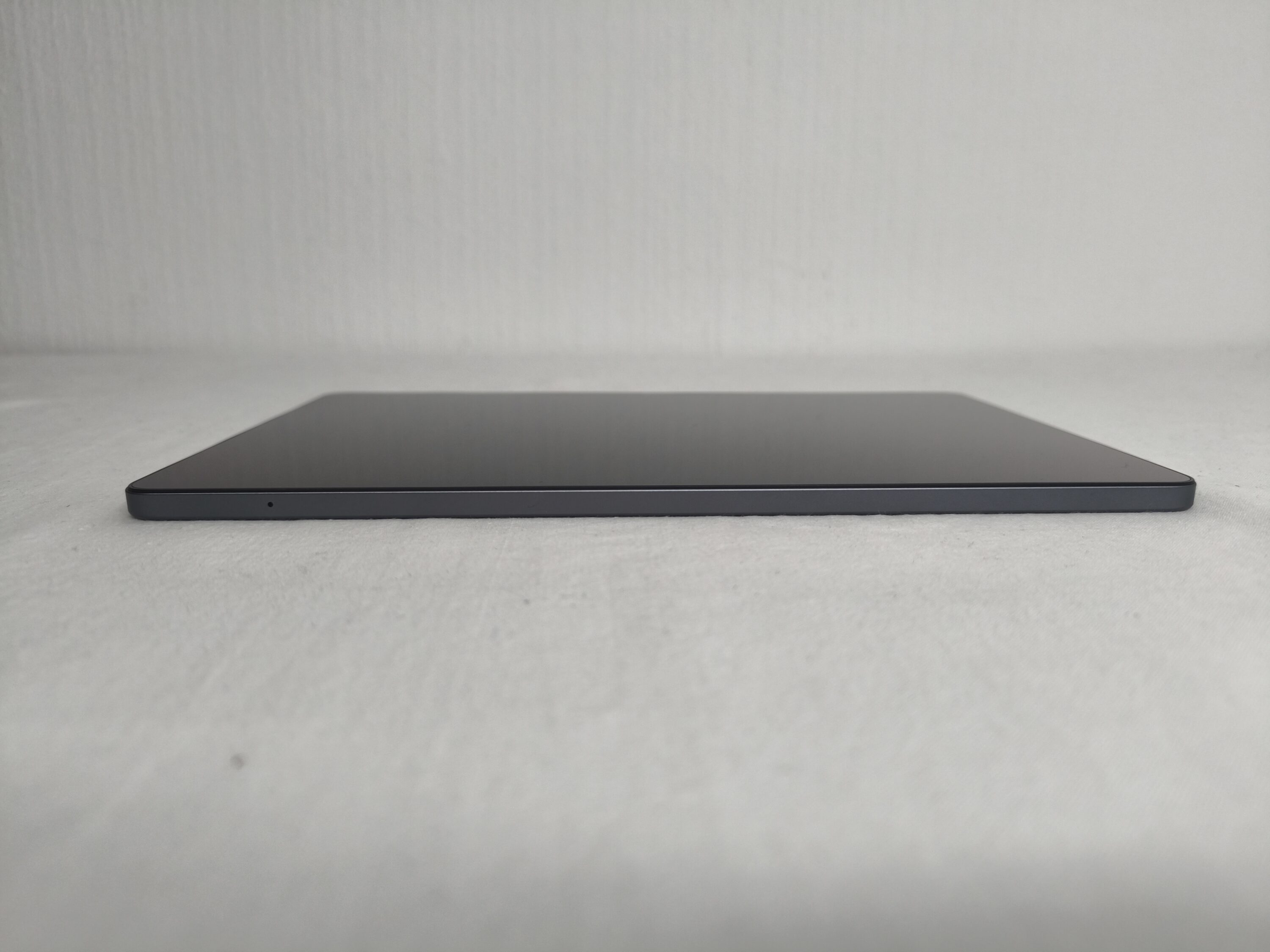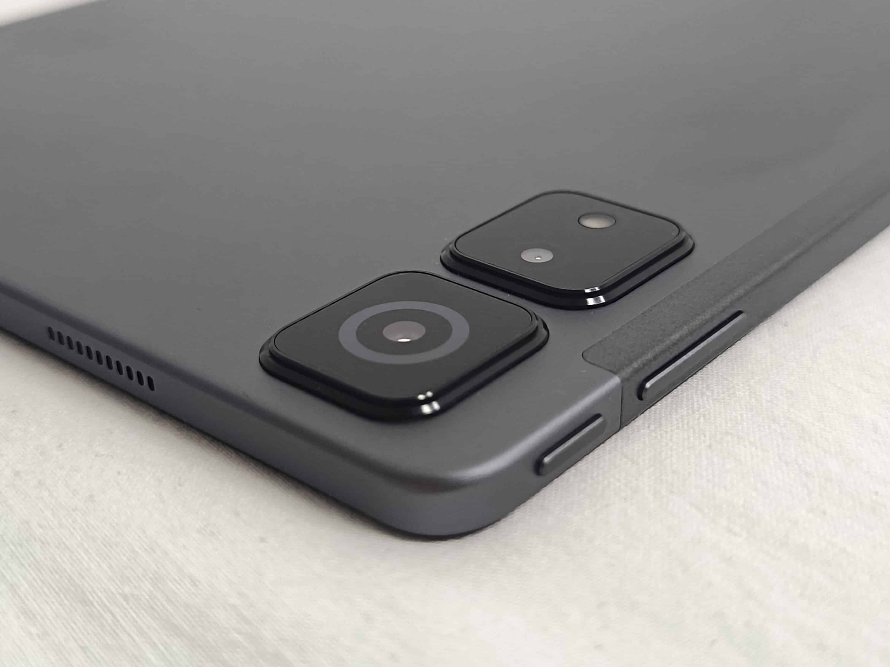 Visually, the entry-level tablet makes a solid impression and looks very high-quality thanks to the gray aluminum casing. This extends across the entire back, where the two protruding camera modules are also located. While the upper panel is the primary 13 MP camera, the second module shares a 2 MP macro camera with flash. An 8 MP front camera above the 11-inch IPS display is available for selfie photos. The first thing you notice when you switch it on is the relatively wide edges, which make the tablet look a little old-fashioned.