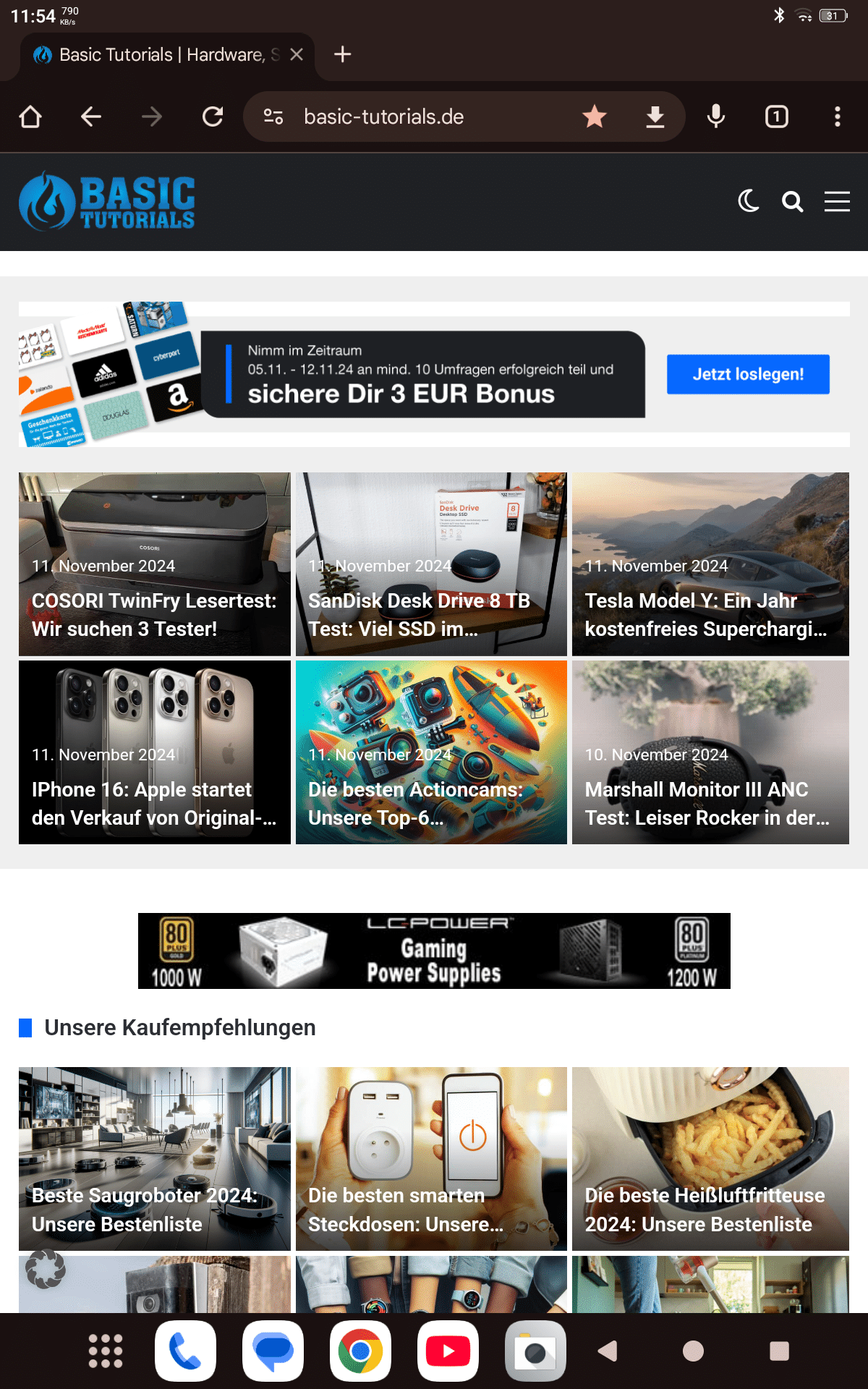 A better result is achieved for general browsing or streaming from Netflix to Amazon Prime and Disney+. The display is bright enough here and typing with the Android keyboard works extremely reliably in both landscape and portrait mode despite the almost 11-inch screen. However, if you prefer physical input, you can also order the tablet directly from the manufacturer with a keyboard. Instead of €179, this would mean a surcharge of €30.