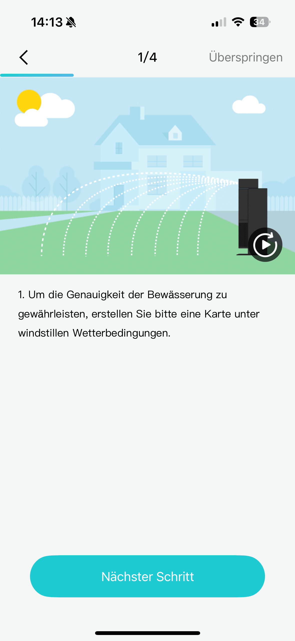 This allows you to create a map of the lawn to be watered within a few minutes. I had a few problems at the beginning because the water jet didn’t reach far enough. I was very surprised by this, as Aiper actually specifies a range of up to 12 meters. However, my test area only measured 6 meters in length. But I was able to solve the problem quite quickly. Apparently the water pressure was too low. A walk to the house connection was enough. There I turned the water up to the stop and was able to continue with the installation.