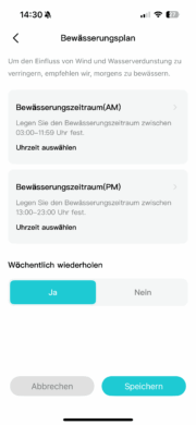 Unfortunately, that wasn’t the only problem I encountered. When I wanted to manually assist with missed watering sessions, that didn’t work at first either. There is a separate button on the IrriSense for this purpose. However, a software update fixed the problem, so everything works perfectly in the latest version. But I would also like to see a little more in terms of the range of settings available in the Aiper app in the future.