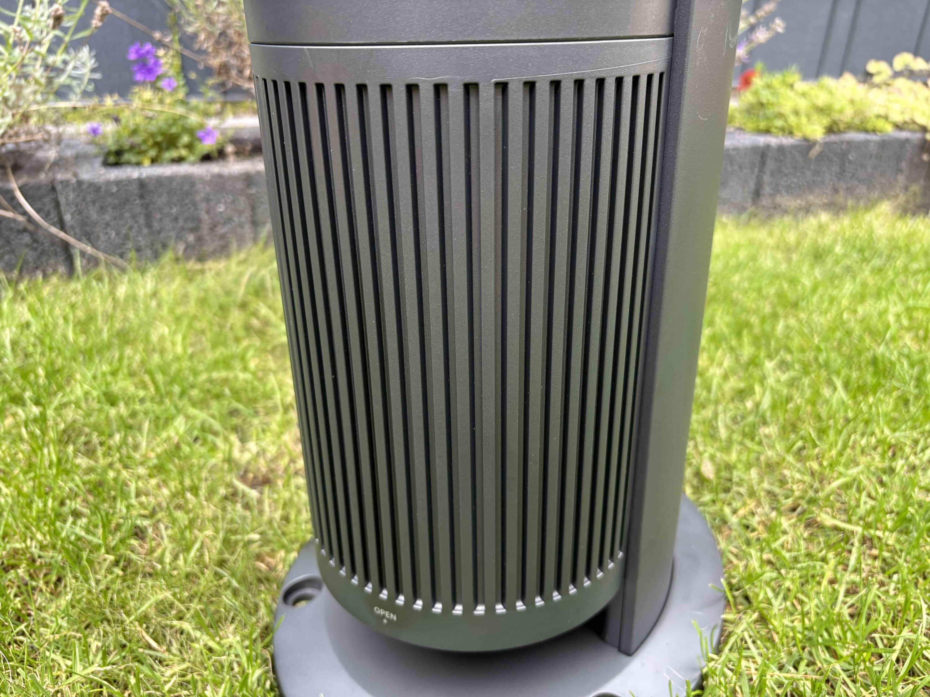 At first glance, the Aiper IrriSense looks more like a pedestal fan. My neighbor looked correspondingly surprised when he saw the IrriSense for the first time. Aiper has opted for a monolithic, column-shaped design here. The housing is finished in an elegant and modern anthracite. However, for regions like mine, where the water is very calcareous, the dark housing could be a disadvantage. After all, limescale stains could quickly build up here.