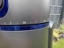 There is a pressure gauge on the top that measures the water pressure emitted by the appliance. Aiper has also placed a rain sensor here to help you save water. There is also a button in the area of the rain sensor that you can use to start the watering process as required. The water outlet is located at the top of the front.
