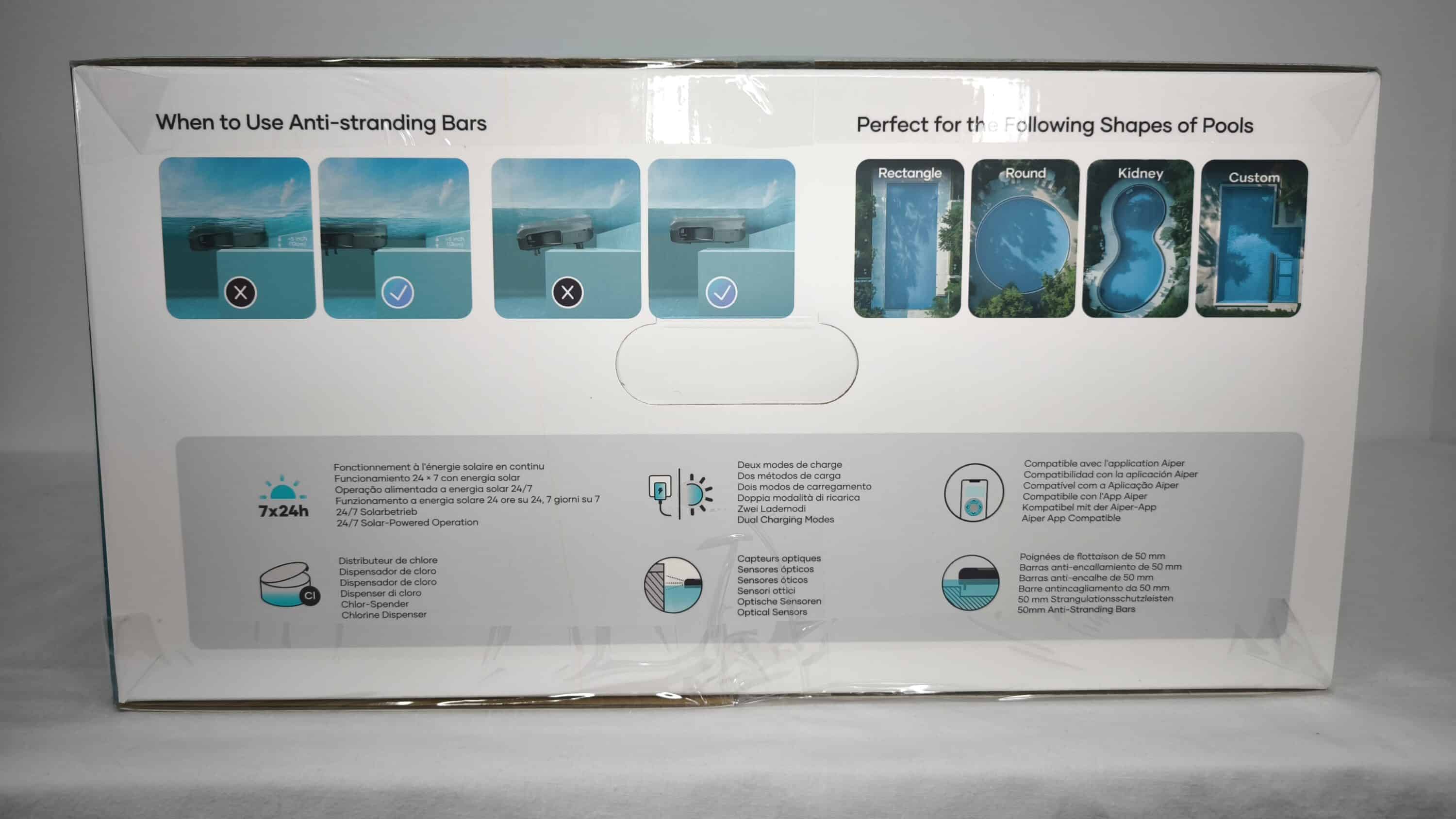 Compared to its predecessor, the AIPER Surfer S2 has a significantly longer battery life of up to 35 hours on a single charge and a dedicated dispenser for chlorine tablets in the filter basket. There are also optimized sensors for obstacle detection and a locking system to prevent collected dirt from escaping.