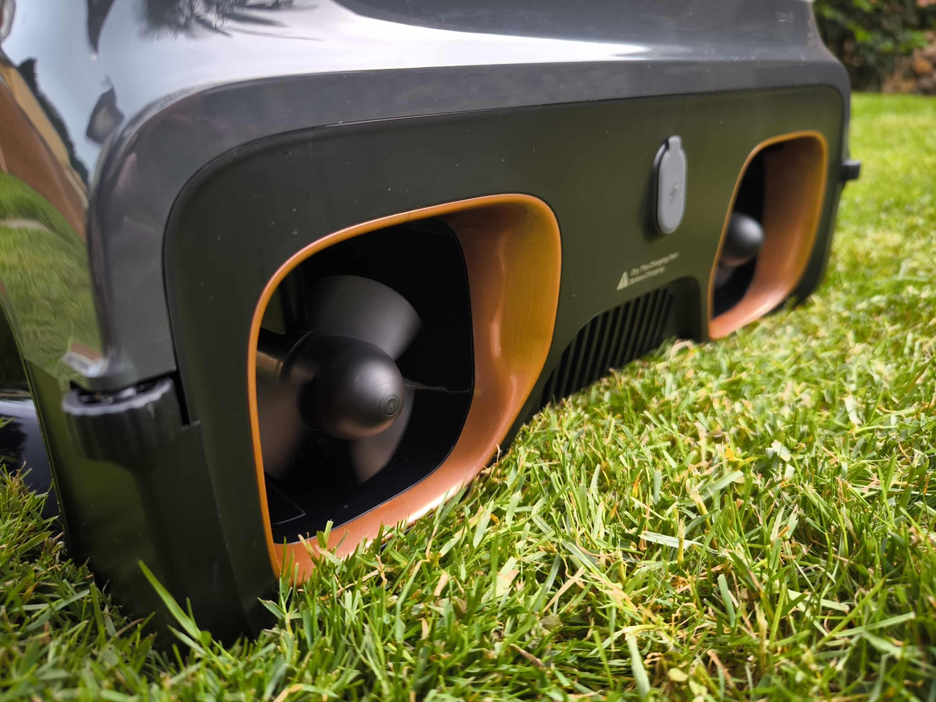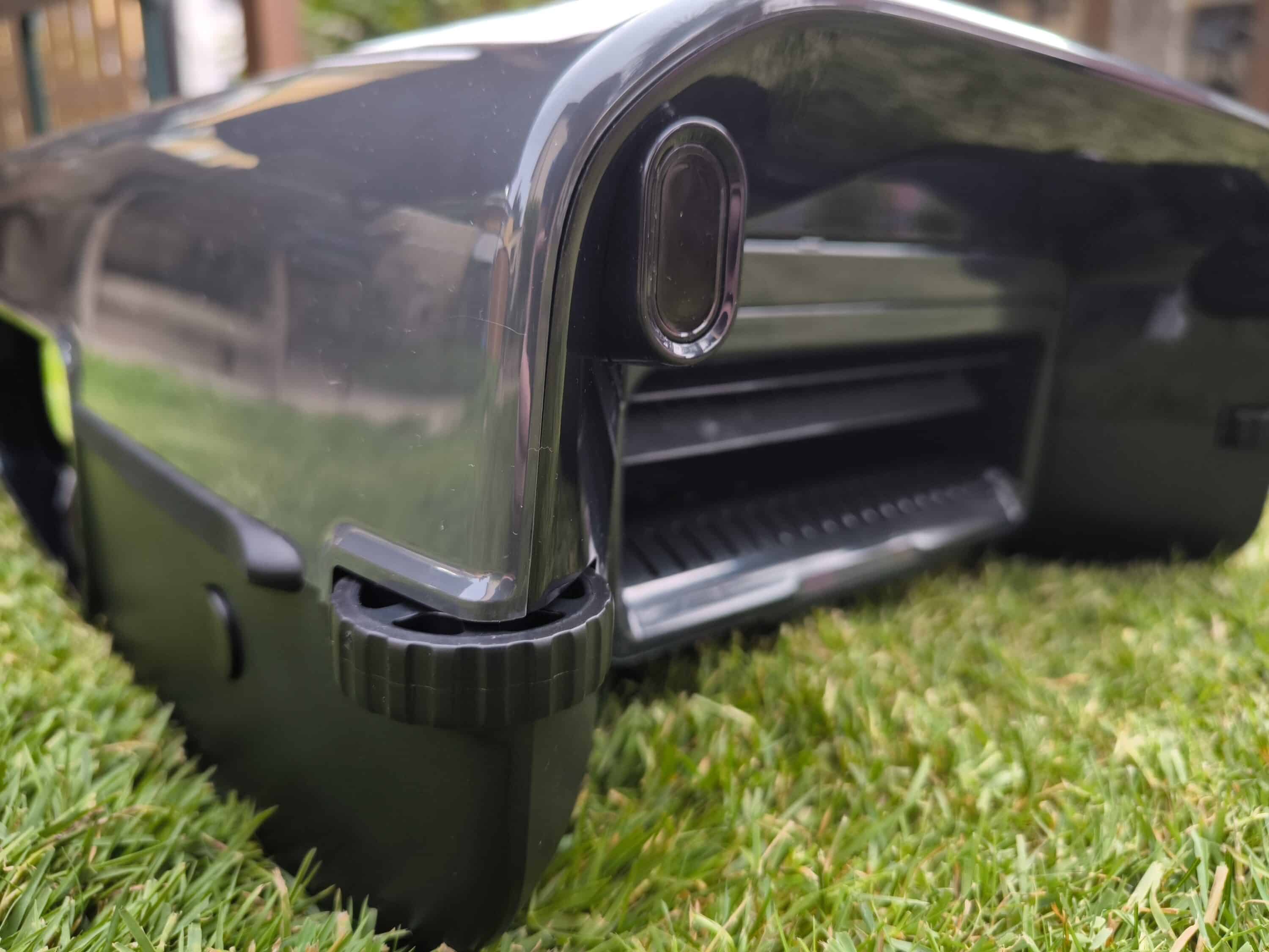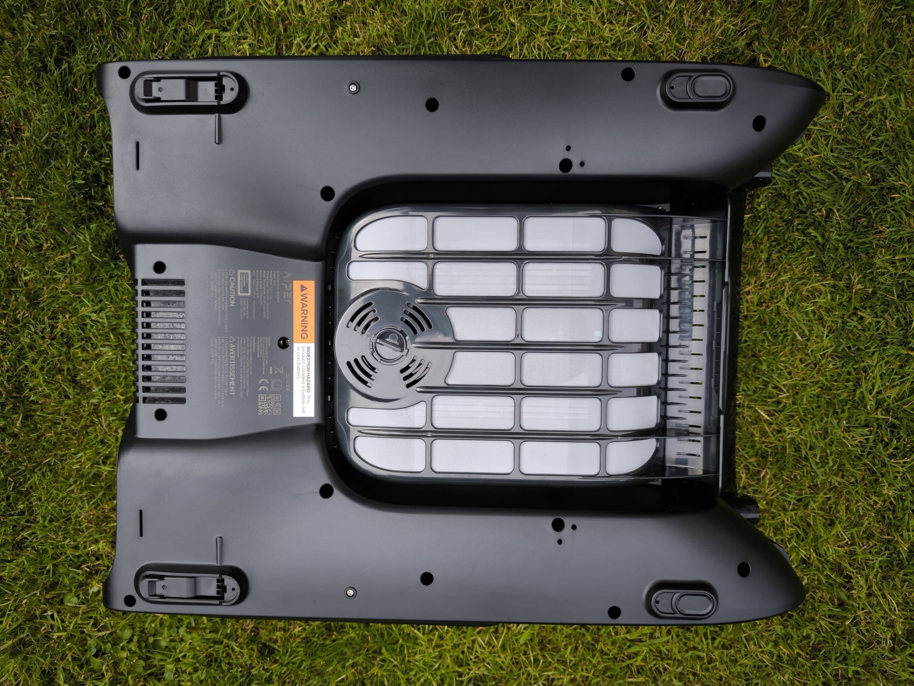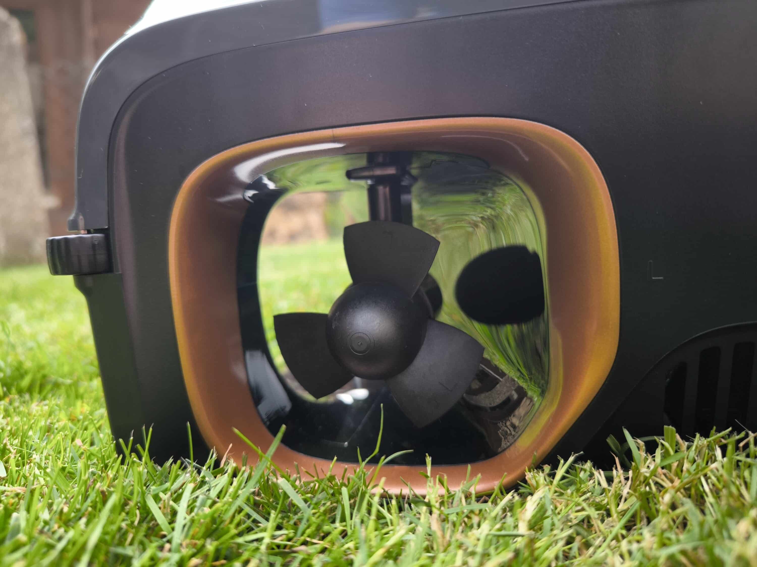 Let’s get to the hard facts of the AIPER Surfer S2, in other words: What can this thing do? The large solar panel has remained unchanged, but unlike its predecessor, it no longer has a cut-out in the middle. With the Surfer S1, the entire deck could be pushed back to access the filter basket. This feature is no longer available on the new model, as the filter basket can now be removed from the front. There are still three brushless motors. Two of them are used to drive the propellers and one for the impeller.